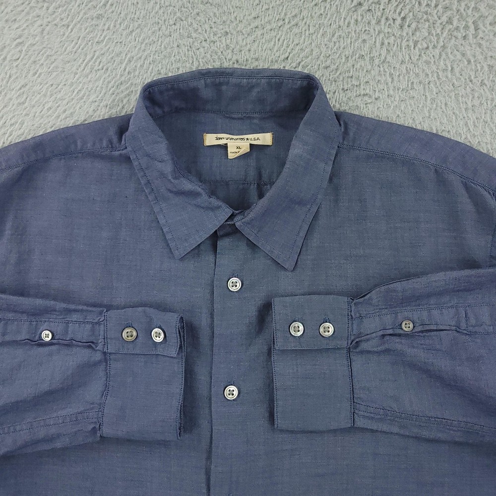 Brand: John Varvatos U.S.A. Type: Mens long sleeve dress shirt with button front closure and collared neckline. Color: Solid blue with a subtle textured weave. Size: Mens XL regular. Details: Point collar, barrel cuffs with two-button adjustment and sleeve placket buttons, curved shirttail hem, no chest pocket. Material: Cotton Washed and dried with Fragrance Free Detergent & Dryer Sheets. Measurements are included in the photos, compare measurements with your item to ensure proper fit. (Measurements are done with the item lying flat). I ship next business day and all items include tracking. Items are added daily to my store Visit My Store Buy More & Save! Combined shipping for US customers - $1.99 for each additional item (Add items to shopping cart and discounts will automatically calculate during checkout)