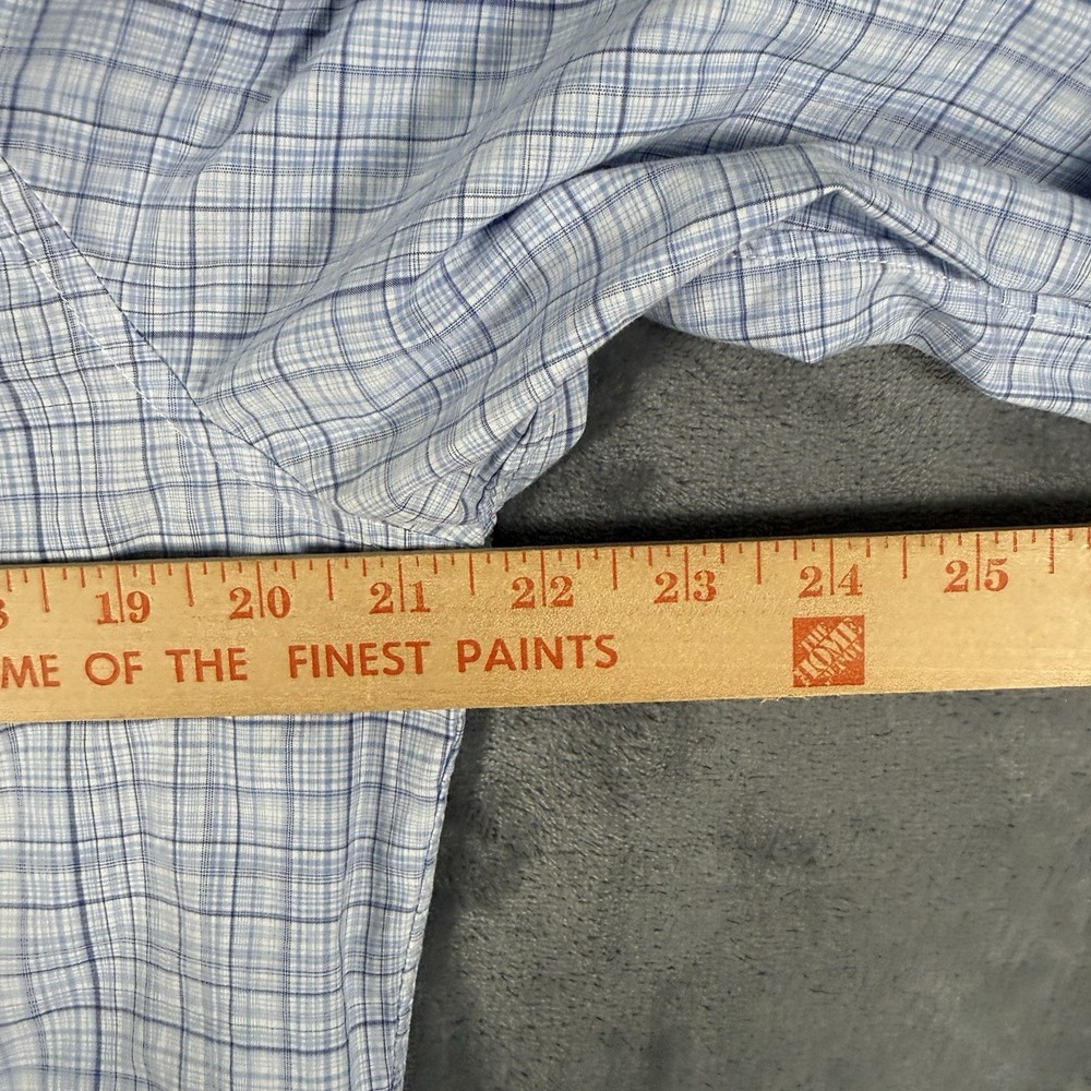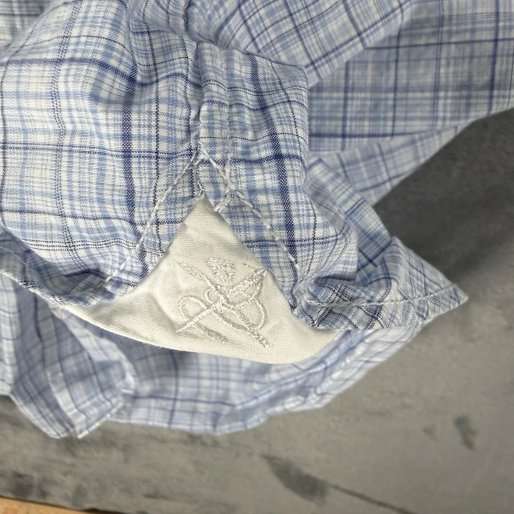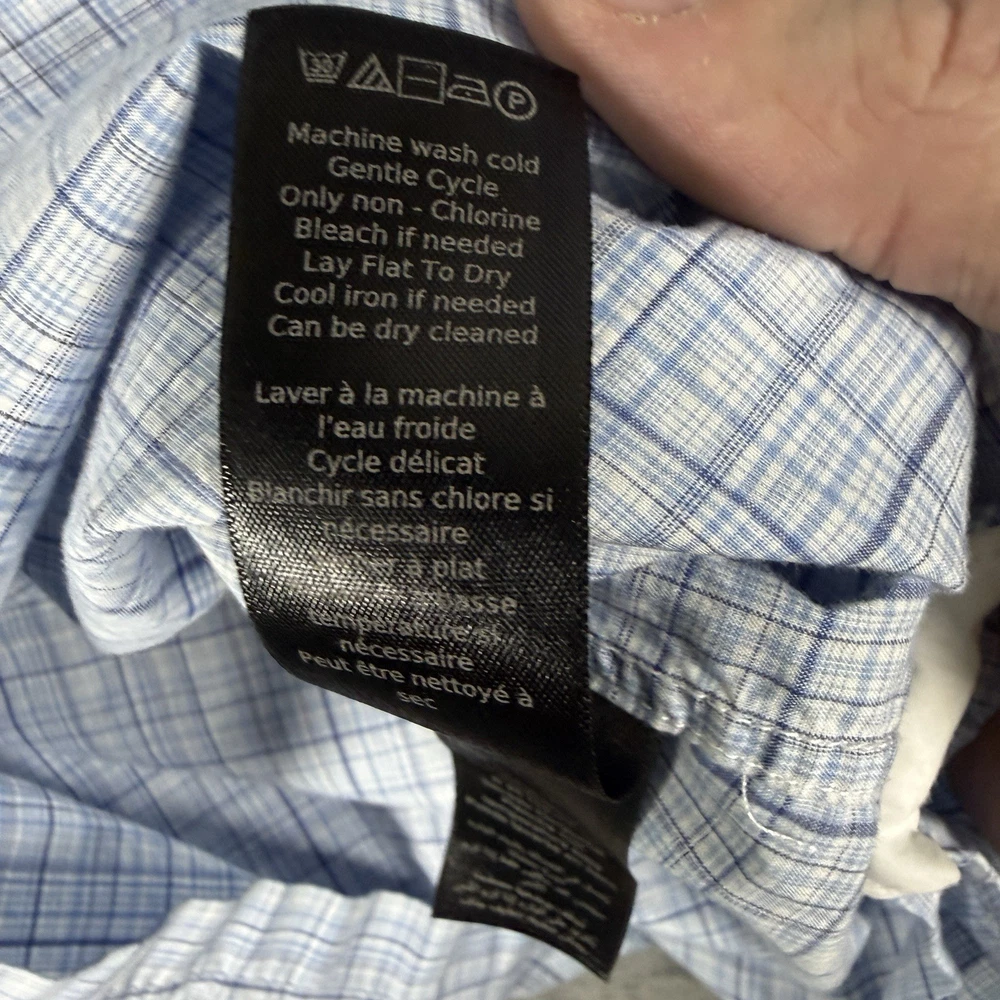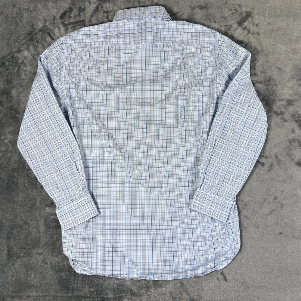 The John Varvatos USA Signature Tailored Regular Fit Dress Shirt in Blue Plaid is a classic and versatile piece suitable for casual and business occasions. Made from cotton with a woven fabric type, this shirt features a collared neckline, button closure, and long sleeves with a barrel cuff style. The shirt is adorned with accents such as buttons and the John Varvatos USA logo, adding a touch of sophistication to the overall look. With a chest size of 24 inches and a neck size of 15.5 inches, this dress shirt is designed for a regular fit and is suitable for all seasons.