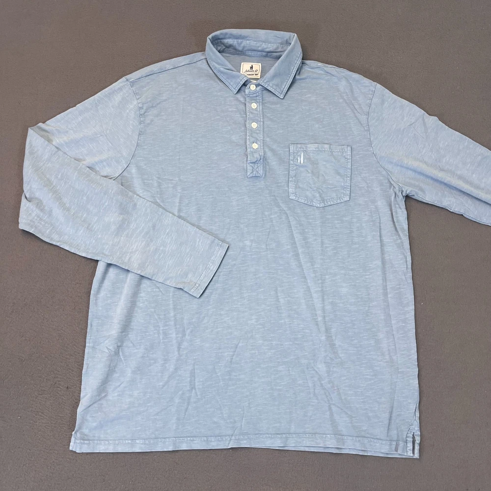 Johnnie-O Hanging Out Polo Shirt Long Sleeve Blue Coastal Men’s large NWOT |