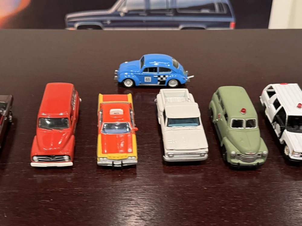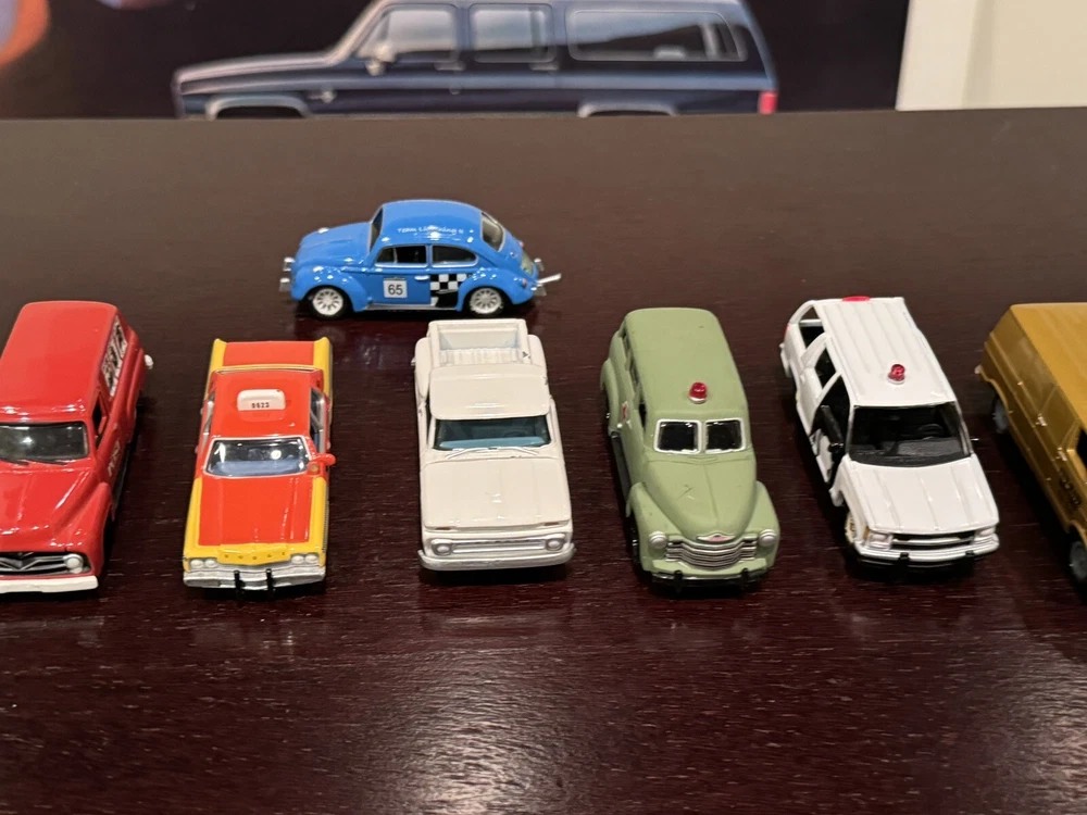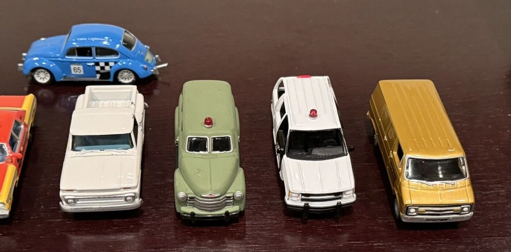You are viewing a loose lot of Johnny Lighting diecast that are shown in the photos in various shape and have pulled from my personal collection. Few might have been bought preowned so hard to tell how they were kept beforehand. However everything that come from my personal collection is from a smoke free household and pet free. Message me with any questions or concerns, and be sure to review all photos before purchasing as I do my best to show every angle of the diecast cars. No Oversea shipping No Shipping to Alaska, Hawaii, Purto Rico Lower 48 States Only This lot includes 9 Loose diecast cars that are all Johnny Lighting Brand. You will be receiving the vehicles as shown and those are 1 Blue Volkswagen Bug 1 Dark Red Mercury Cougar 1 Ford Panel Van 1 Taxi 1 Chevy White Pickup 1 Army Green Chevy 1 White Chevy tahoe has missing decal on one side of the car 1 Dodge Ram Van 1 Back to the future