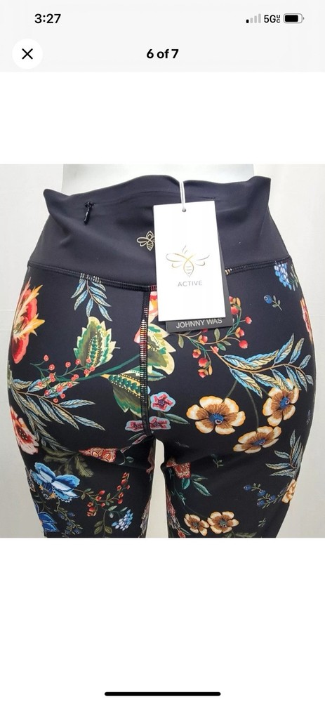 Elevate your workout wardrobe with these Johnny Was Bee Active High Waist Sculpting Leggings. Featuring a vibrant multicolor floral pattern, these leggings are perfect for any occasion, whether it's travel, activewear, or casual. Made with 71% polyester and 29% elastano fabric, these leggings are comfortable and stretchy, with easy care and pockets for added convenience. Ideal for a variety of performance activities, including gym and training, walking, volleyball, climbing, cross training, driving, CrossFit, Pilates, basketball, hiking, running, and jogging, these leggings are high-rise with a 24-inch waist and 26-inch inseam. The leggings are made with 85% nylon and 15% elastane fabric, ensuring a perfect fit for regular size women. Add these leggings to your workout collection and experience the ultimate combination of style and performance.