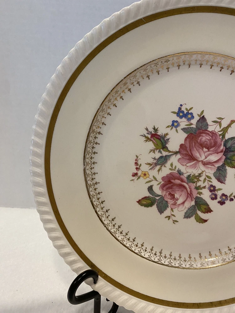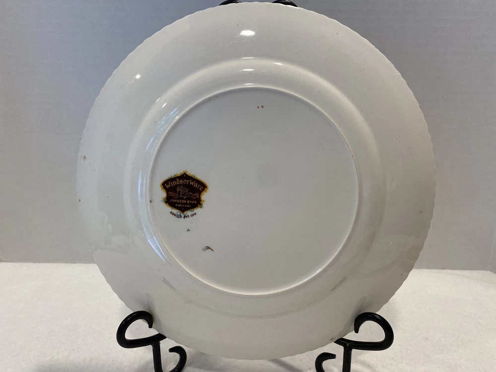Johnson Bros Windsor Ware England 10” Plate Pink Rose Floral Gold Rim. Item is in preowned condition, please see pictures for full description. Stand NOT included.