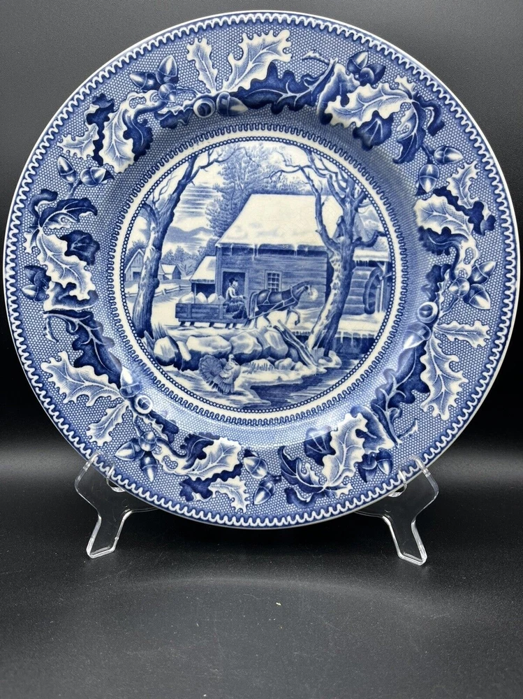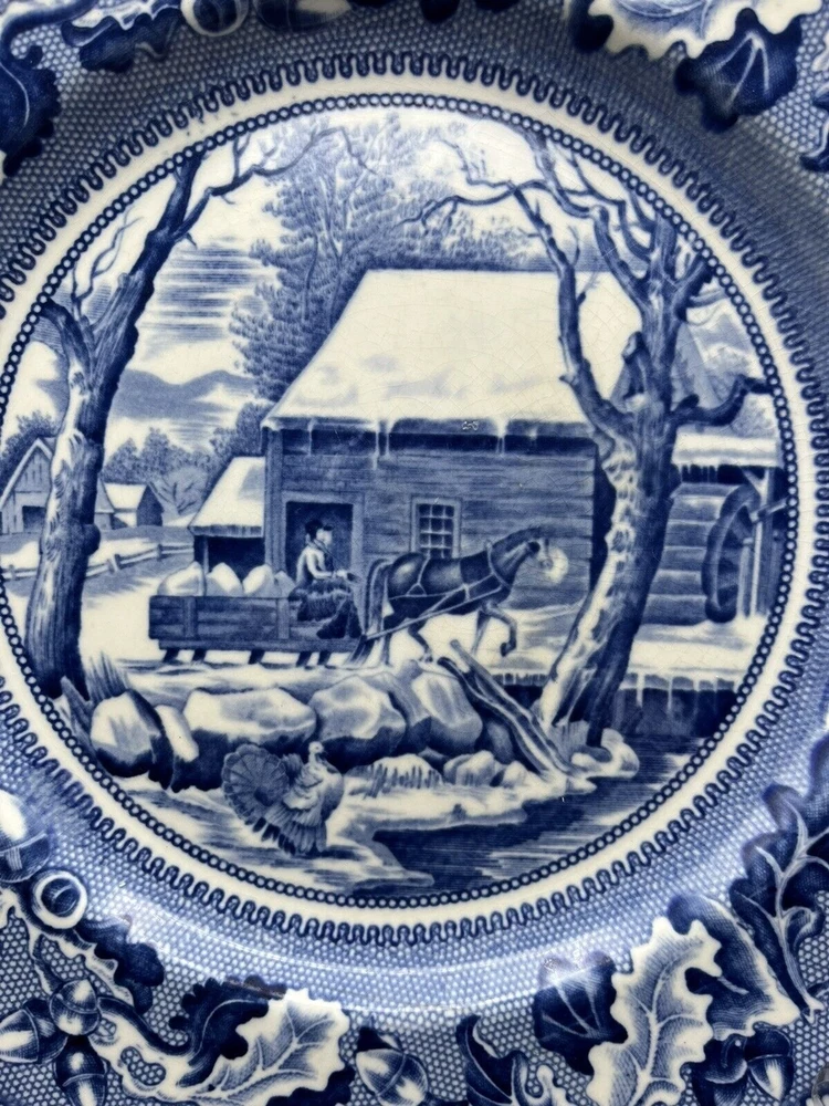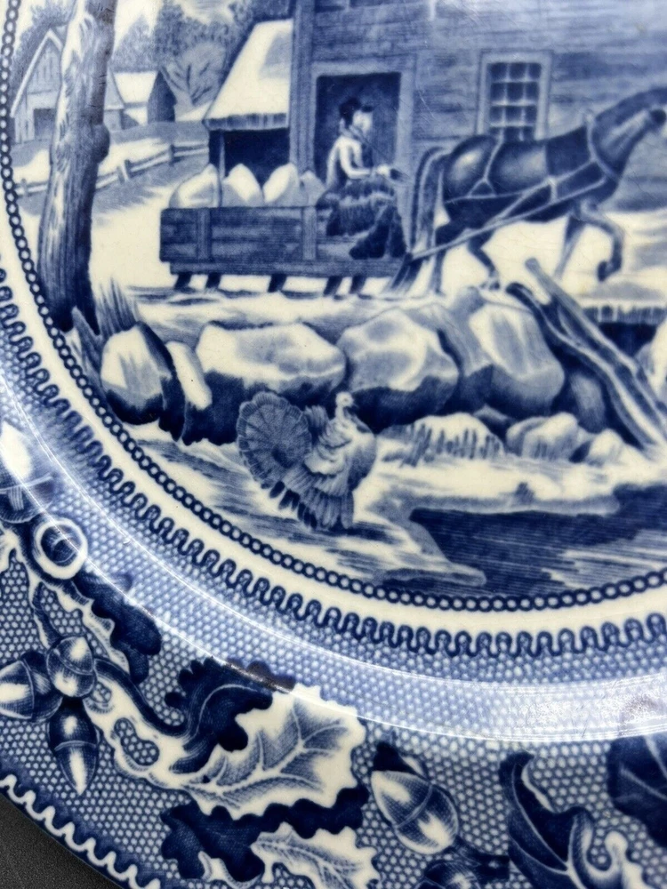 Johnson Brothers Historic America Blue Frozen Up Dinner Plate Thanksgiving 10.5”