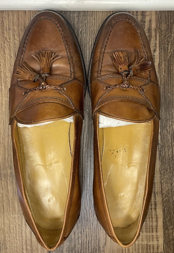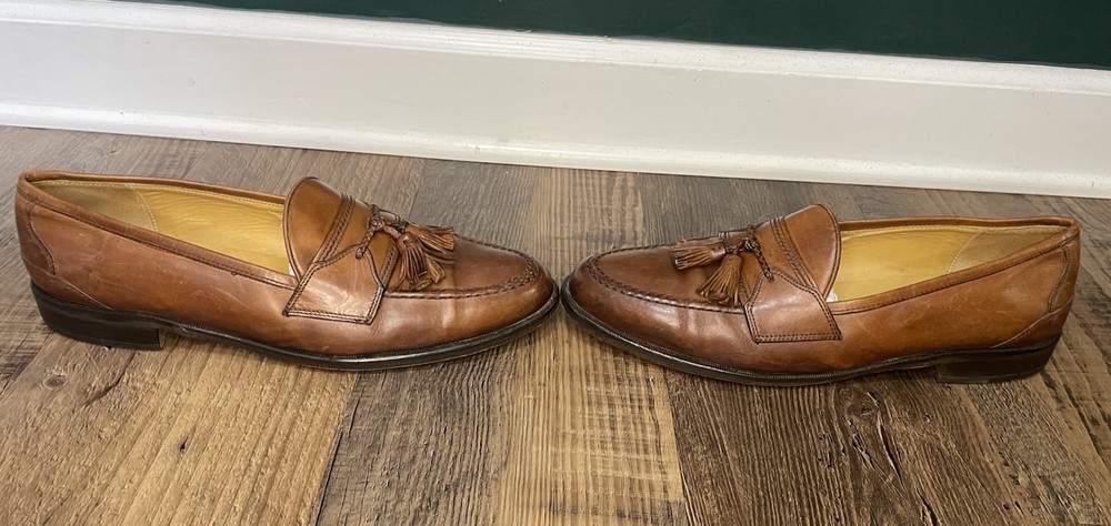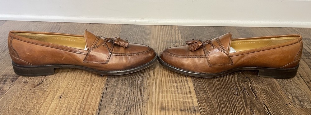Johnston Murphy Cellini Men Sz 12 Kilt Tassel Loafer Brown Leather Made in Italy