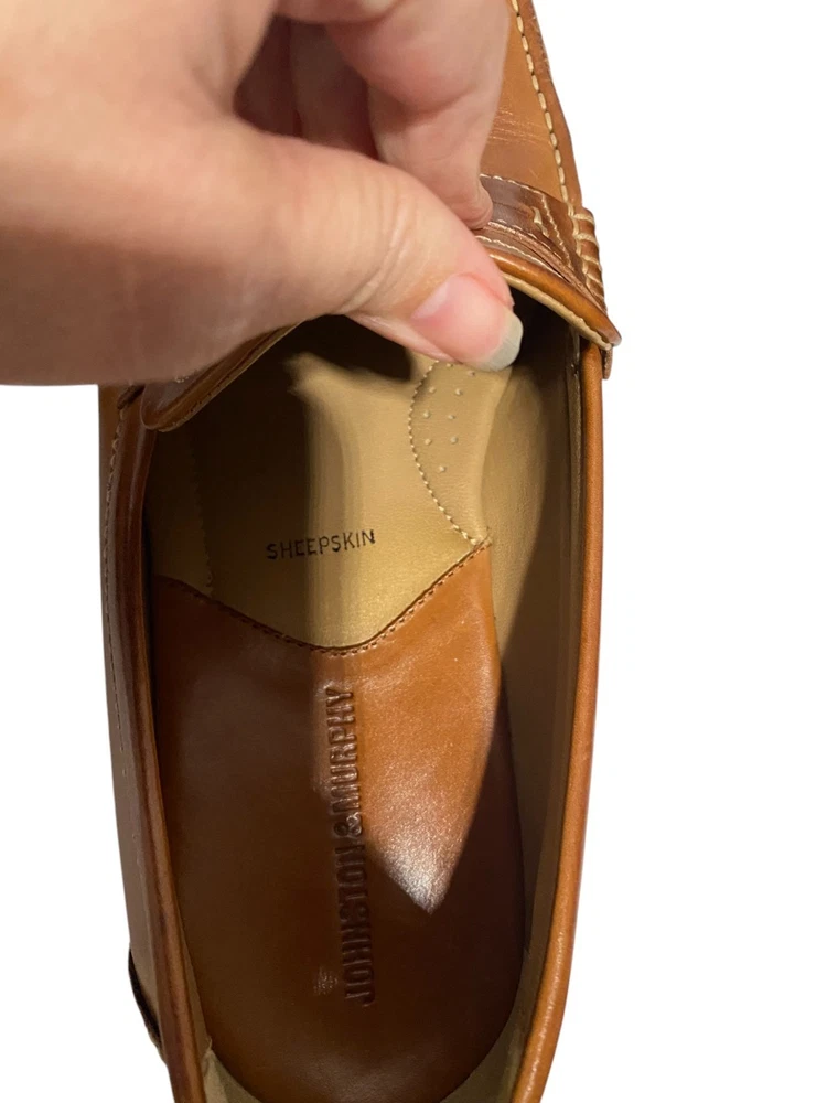 Add classic polish to your wardrobe with these Johnston & Murphy penny loafers , made from smooth cognac leather and lined with genuine sheepskin for premium comfort. These loafers are new without box (NWOB) and have never been worn . Size: Men’s 8.5M (Medium Width) Color: Cognac (a rich, warm medium brown) Material: Leather upper, leather lining, sheepskin insole Style: Penny loafer slip-on Condition: Unworn, no original box - t hese shoes have never been worn , and there are no signs of use on the insoles, uppers, or heel. They come from a smoke- and pet-free home . Outsoles show a slight surface residue consistent with bloom —a harmless cosmetic effect from storage, not wear (see photos). Check out my other listings for more great things! I list new things daily.