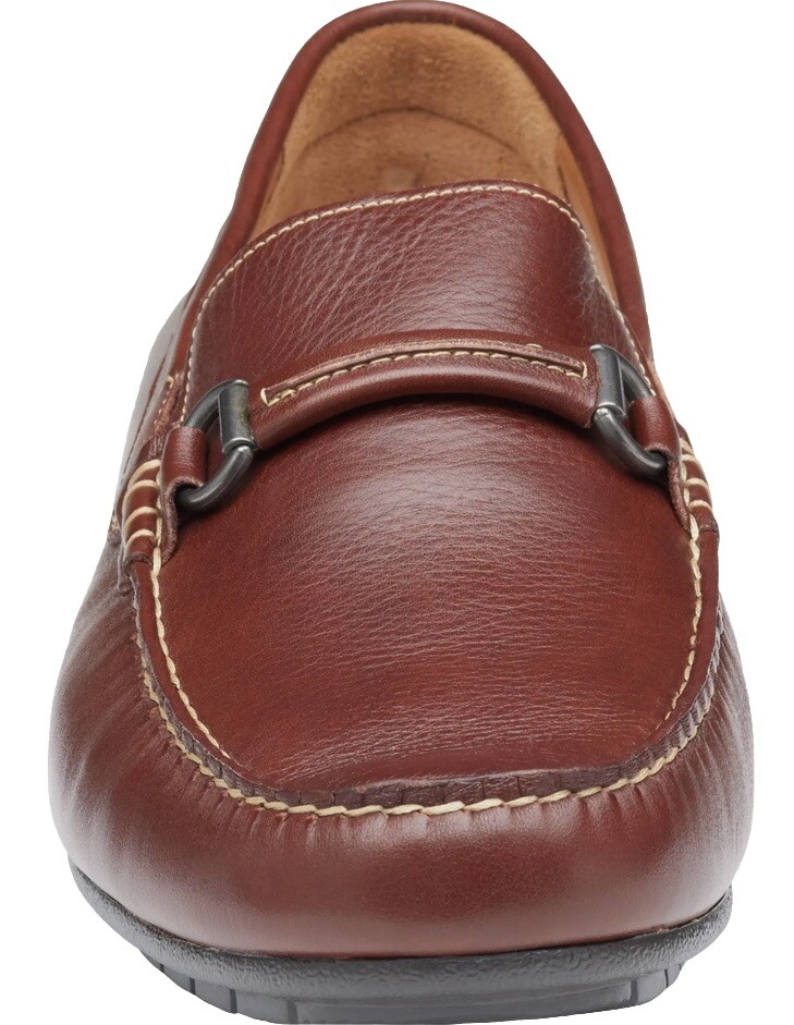Step into classic style and comfort with the Johnston & Murphy Cort Bit Loafer, a must-have for any discerning gentleman's wardrobe. Crafted with a rich brown leather upper and a durable rubber outsole, these loafers offer a sleek look that's perfect for casual outings or travel. The cushioned insole and breathable features ensure your feet stay comfortable throughout the day, whether you're at the office or enjoying a weekend jaunt. The loafers boast a timeless solid pattern and a round toe shape that complements a preppy aesthetic, aligning with the horse theme that runs through the design. The slip-on closure provides ease of wear, making these shoes an ideal choice for those who value both style and practicality. With a versatile appearance that transitions smoothly across seasons, these loafers are a staple for year-round sophistication.