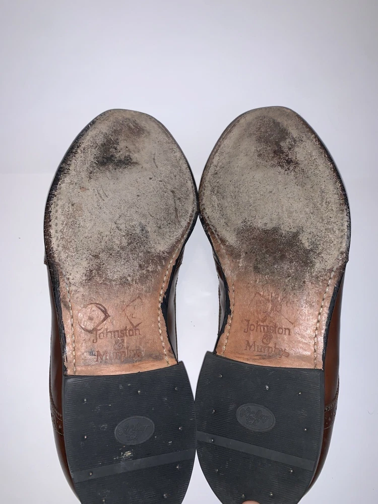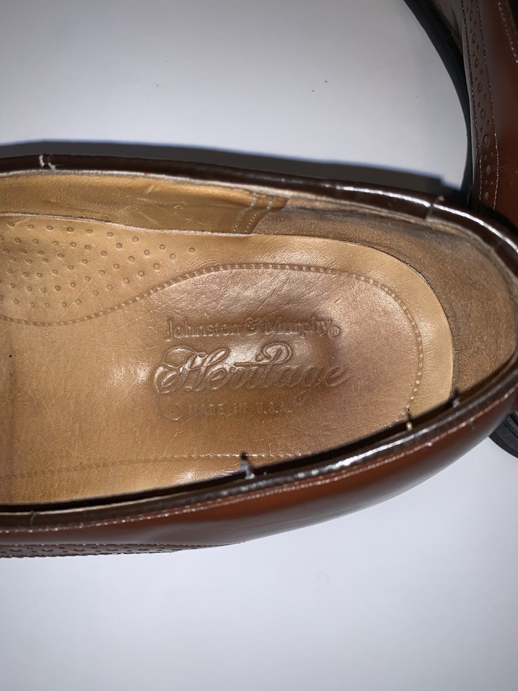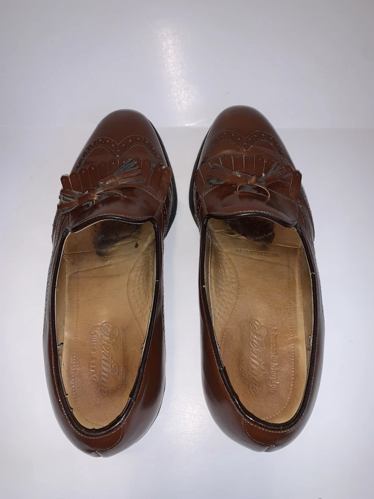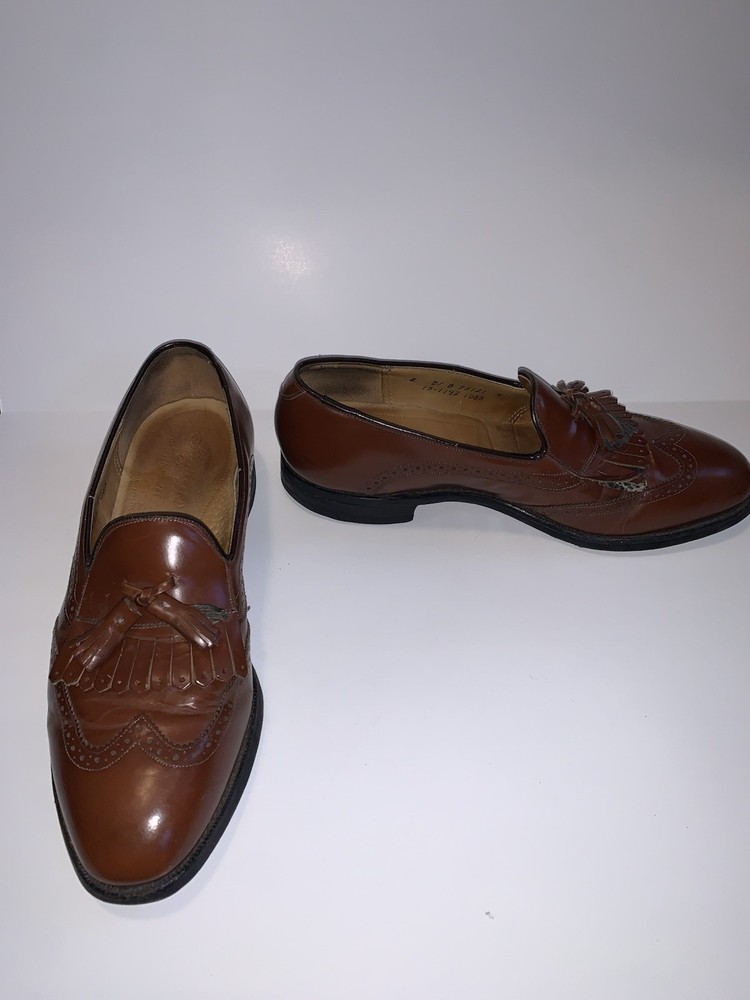 Shoe Width: D Accents: Tasseled Pattern: Solid Season: Fall, Spring, Summer Theme: Preppy Outsole Material: Leather Country of Origin: United States Model: Tassel Toe Shape: Almond Toe US Shoe Size: 8 Style: Loafer Product Line: Johnston & Murphy Features: Wingtip Customized: No Type: Dress Lining Material: Leather Color: Brown Insole Material: Leather Department: Men Brand: Johnston & Murphy Closure: Slip On Upper Material: Leather Vintage: Yes