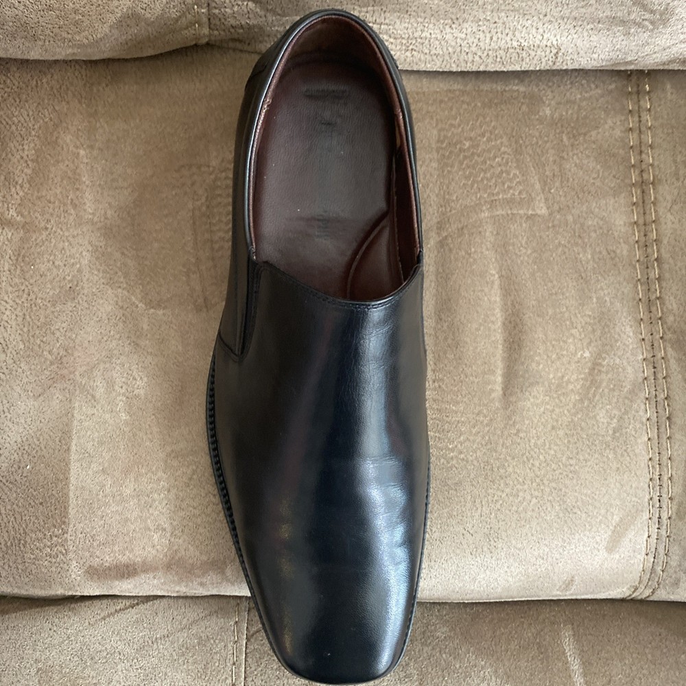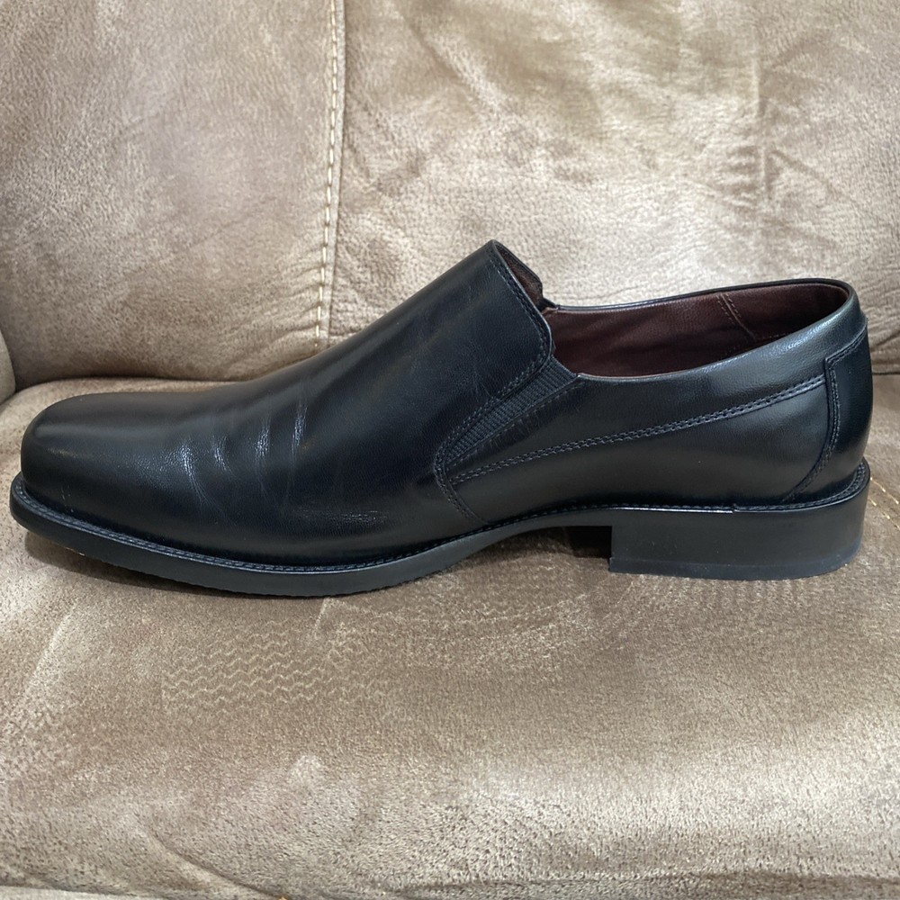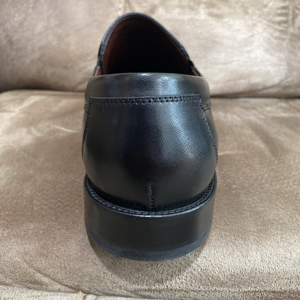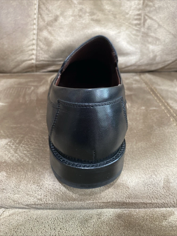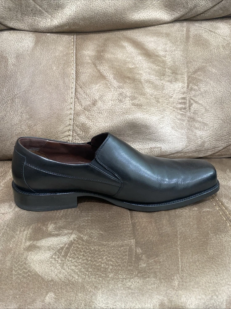Preowned in EUC Johnston & Murphy Mens Black Leather Dobson Plven 20-7777 Slip Ons size 12W. Please see pics for details.