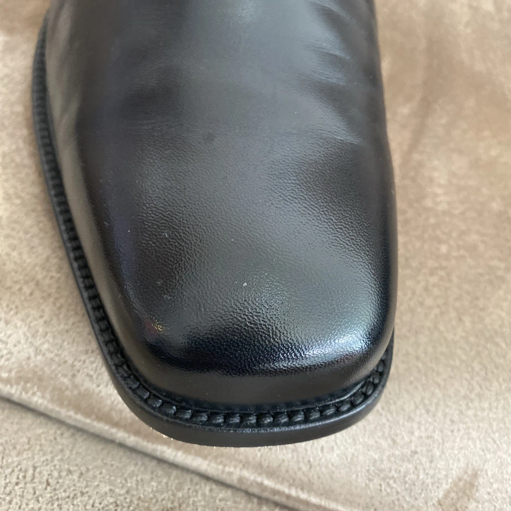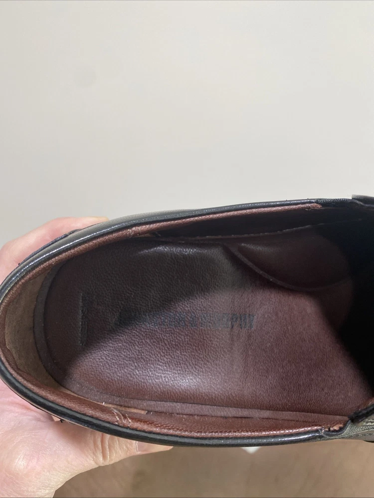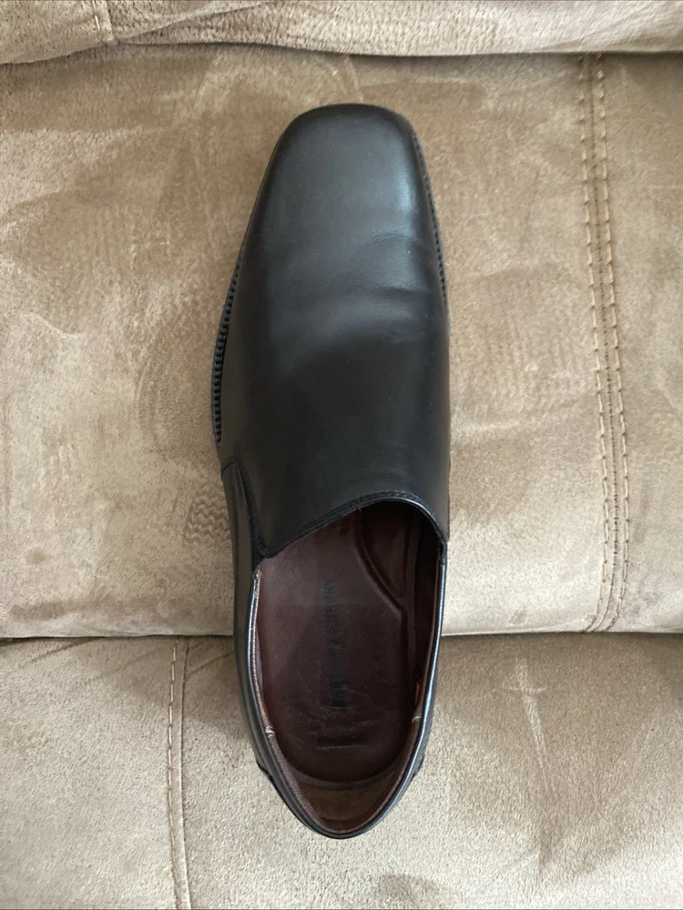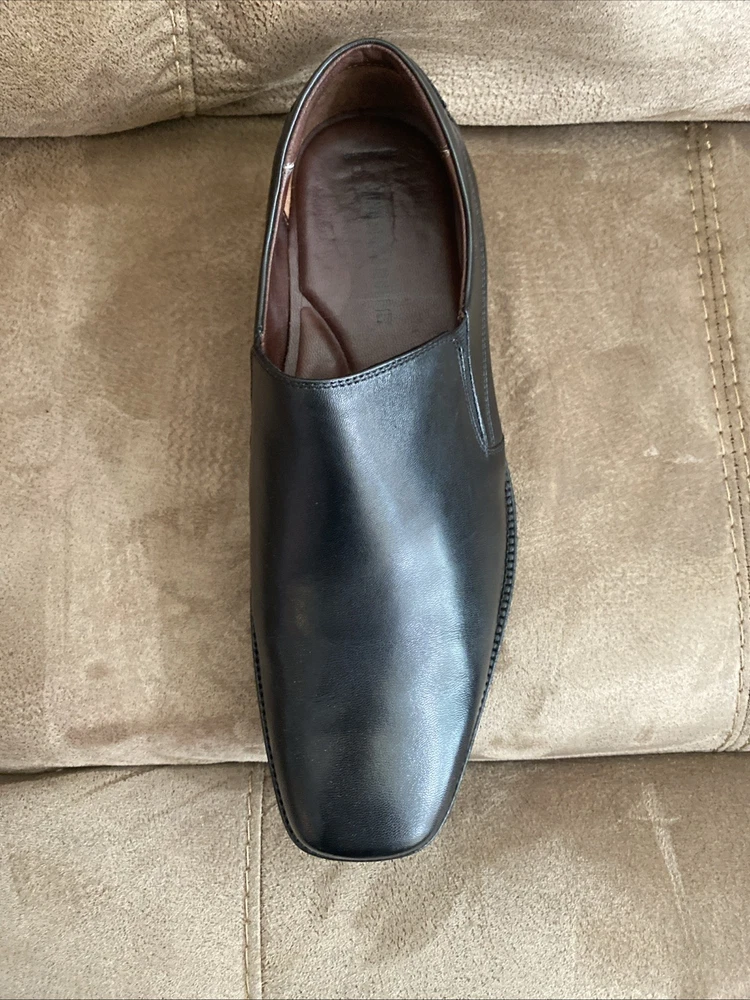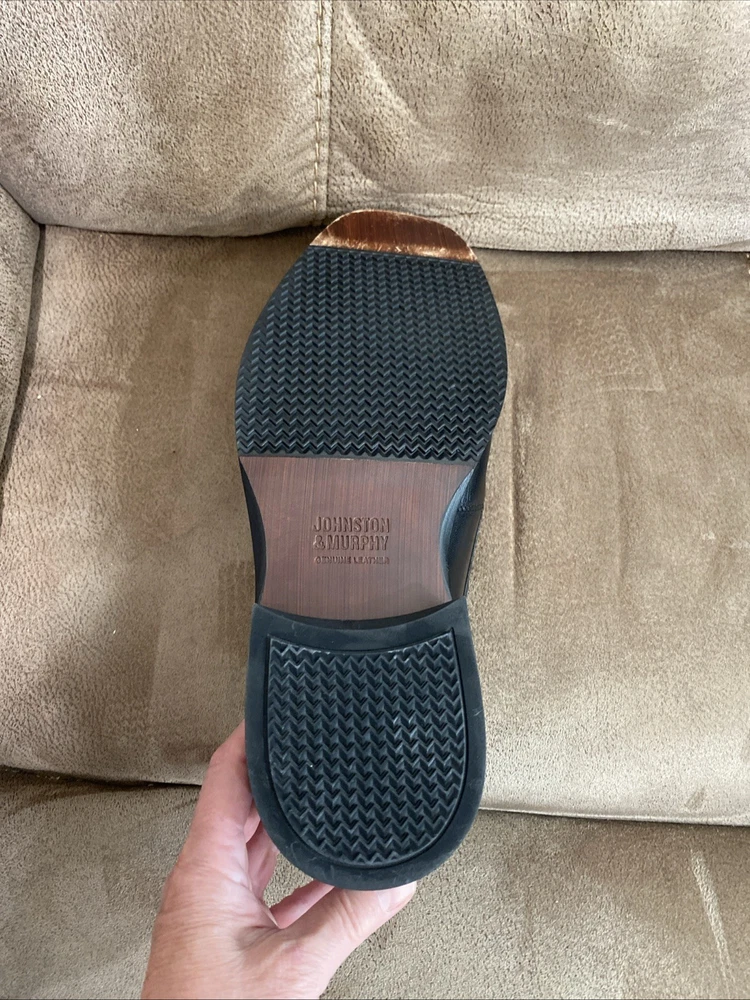 Preowned in EUC Johnston & Murphy Mens Black Leather Dobson Plven 20-7777 Slip Ons size 12W. Please see pics for details.