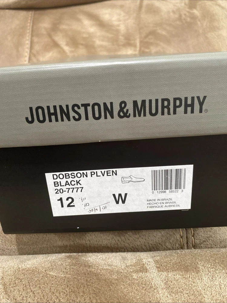 Color: Black gtin13: 0012998585223 Toe Shape: Moc Toe Heel Height: Flat (Under 1 In) Department: Men US Shoe Size: 12W UPC: 0012998585223 Brand: Johnston & Murphy Product Line: Dobson Upper Material: Leather Closure: Slip On Shoe Shaft Style: Low Top Type: Dress Shoe Width: W Model: Dobson Pattern: Solid Country of Origin: Brazil Style: Loafers & Slip Ons MPN: 20-7777 US Shoe Size (Men's): 12W