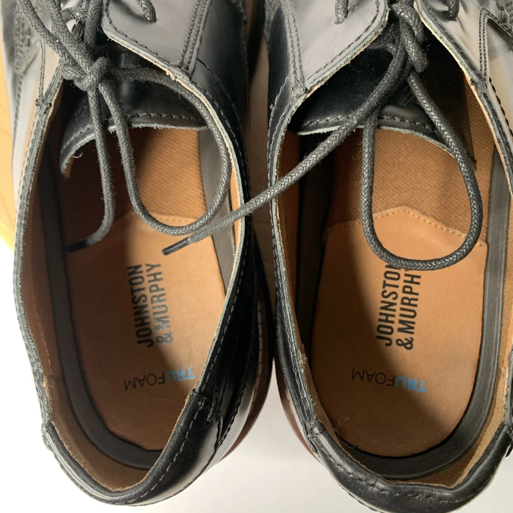 Johnston & Murphy Upton Mens Black Leather Lace-Up Shoes Size 12M TruFoam 595451