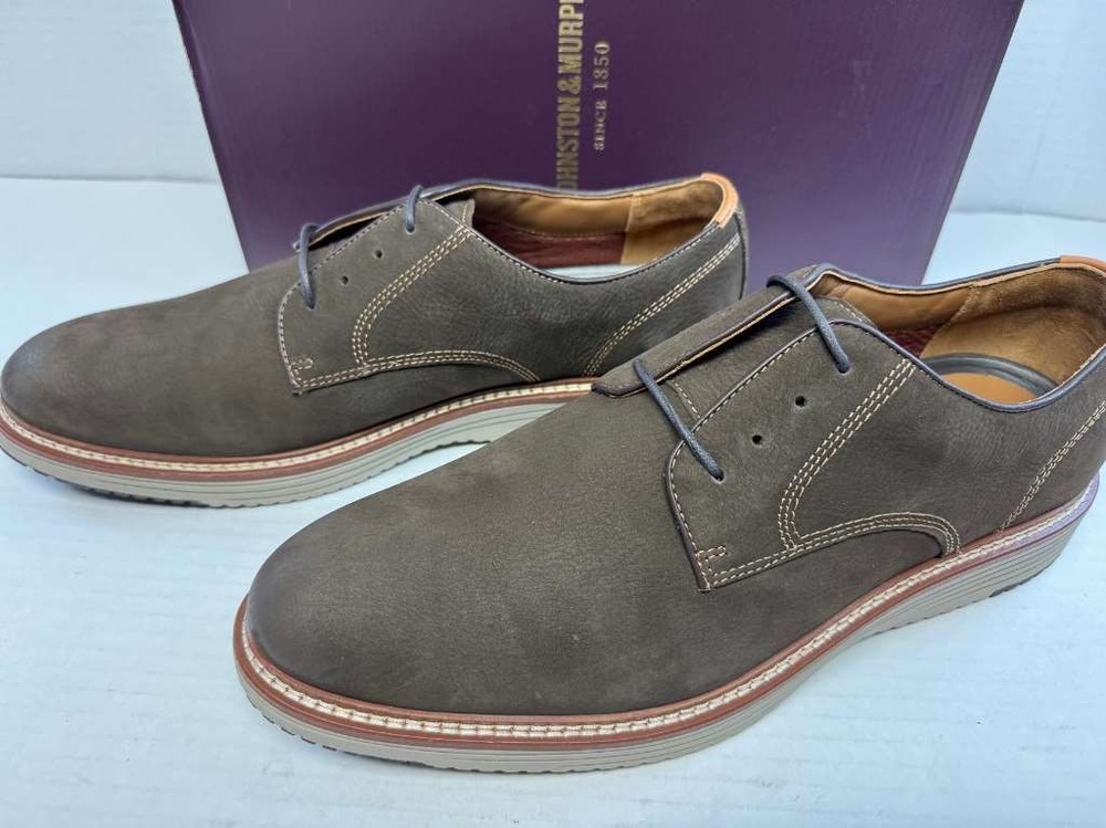 Powered by Frooition All Items See our eBay store for more great items >> Shop Categories Other Shoes and Boots Coats and Jackets Back Braces Wrist Braces Knee Braces Compression Hosiery Socks Camping Gear Misc. Johnston & Murphy Upton Plain Toe Lace Up Dress Shoe, Dark Brown Nubuck, 10.5 M US Item Description Product Category : Shoes UPC : 195113137894 Title : Johnston & Murphy Upton Plain Toe Lace Up Dress Shoe, Dark Brown Nubuck, 10.5 M US Walmart Subcategory : Currently unassigned. Amazon Subcategory : Men's Oxfords Description : Johnston & Murphy Upton Plain Toe Lace Up Dress Shoe The Johnston & Murphy Upton Plain Toe features a lightweight, flexible, and comfortable design with a full-grain leather or water-resistant nubuck upper, a removable memory-foam footbed, and a high-rebound TRUFOAM midsole. It includes a durable double-stitched leather welt construction, a full-grain leather and antimicrobial mesh lining, and a flexible sole with rubber inserts for enhanced traction and durability. The shoe is designed for all-day comfort and is suitable for business casual or casual wear.