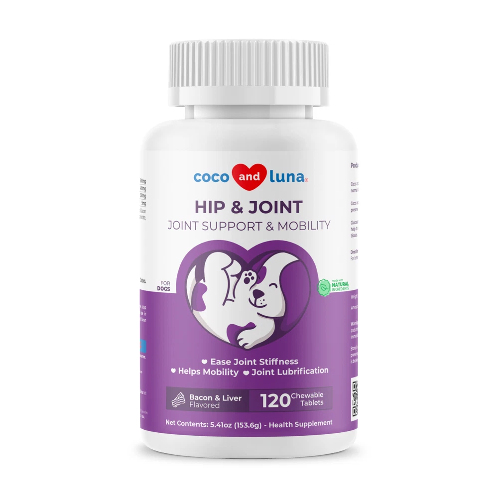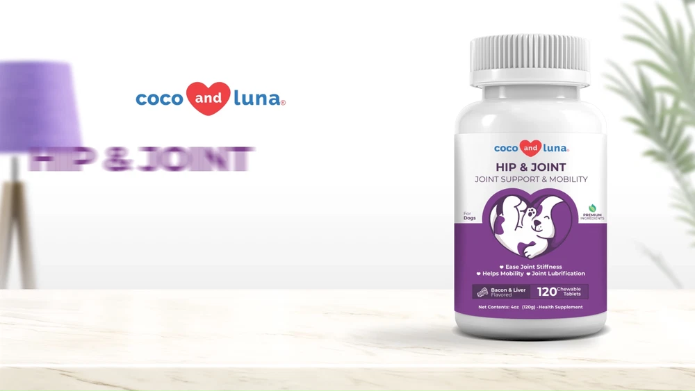 Premium Joint Supplement - Coco and Luna Hip and Joint supplement promotes joint health and joint lubrication while also diminishing arthritis pain through its anti-inflammatory effects. Powerful Formula - Our tablets contain Chondroitin which facilitates the absorption of nutrients and promotes cartilage synthesis, while also being an antioxidant and cell rejuvenator. For Dogs of All Ages - We make our tablets with glucosamine that is perfect for dogs of all ages by helping preserve the integrity of joints and averting deterioration of bone and cartilage. Joint Supplement for Dogs - Coco and Luna Hip and Joint supplement for dogs promotes joint health and joint lubrication while also diminishing arthritis pain through its anti-inflammatory effect. Powerful Formula - Our dog joint supplements contain Chondroitin which facilitates the absorption of nutrients which promotes cartilage synthesis, while also being an antioxidant and cell rejuvenator. For Dogs of All Ages - We make our tablets with glucosamine that is perfect for dogs of all ages by helping preserve the integrity of joints and averting deterioration of bone and cartilage. A Brand You Can Trust - We understand how much your pet’s health and wellbeing mean to you, so our joint supplements for dogs are manufactured in FDA-registered facilities that are NSF and GMP-certified in the USA. Made in the USA from US and Globally Sourced Ingredients - All our products are made in the USA and are veterinarian approved as well as hypoallergenic. Our supplement may help with arthritis pain relief for dogs and may help with overall joint care for dogs.