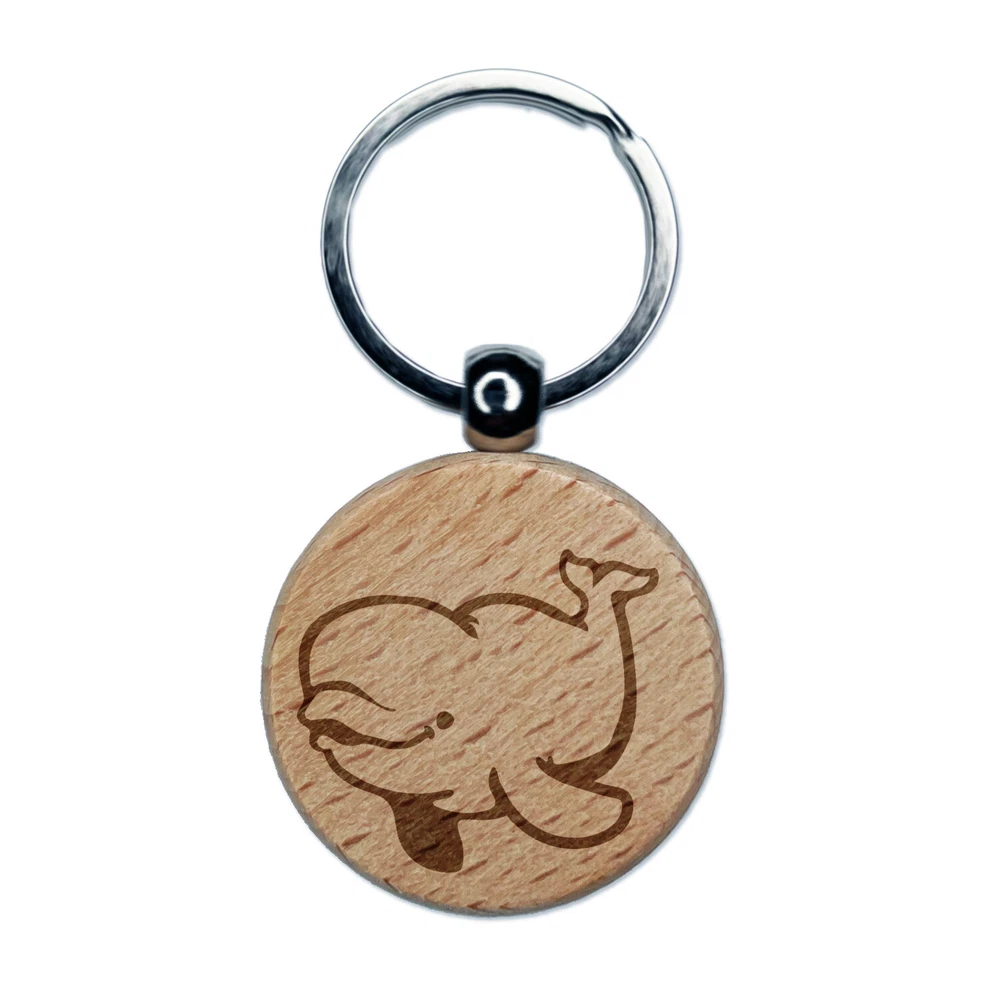 Jolly Beluga Whale Engraved Wood Round Keychain Tag Charm