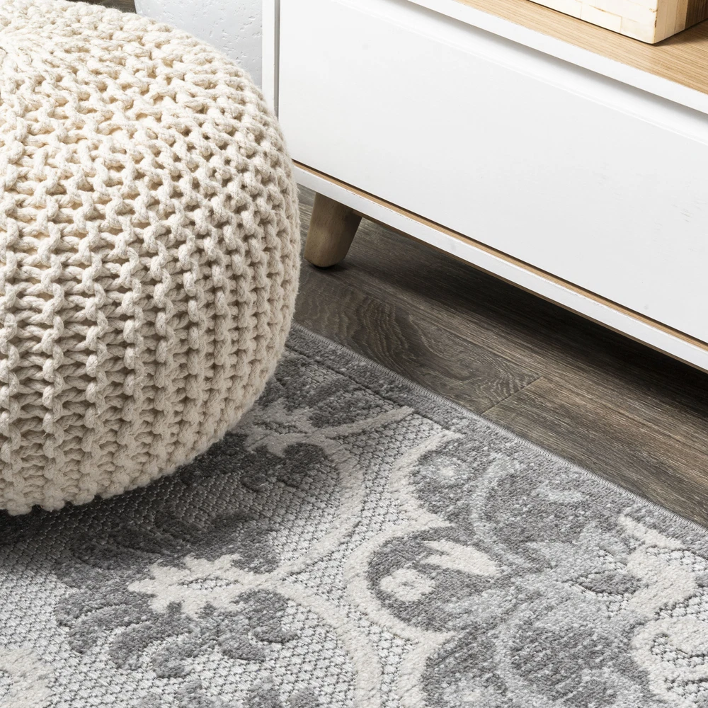 This rug is a game-changer! The Moroccan-inspired medallion design adds a stylish, modern touch to any space, indoors or out. Super easy to clean—perfect for busy homes with kids and pets. The light gray color blends seamlessly, and the polypropylene material holds up beautifully. Love how it elevates my patio with boho charm while being durable enough for daily use. Highly recommend!