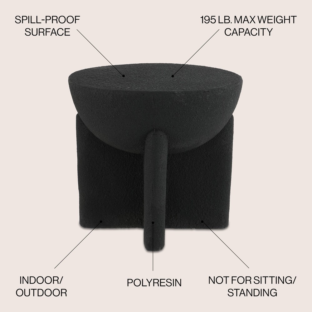 This sleek black accent table is a perfect blend of modern and classic design. The 18" polyresin drum shape is lightweight yet sturdy, making it easy to move around while adding elegant texture to any space. The minimalist geometric style works beautifully in living rooms, bedrooms, or as a stylish side table. The rich black finish gives it a high-end look that elevates your decor effortlessly. Great for small spaces too!