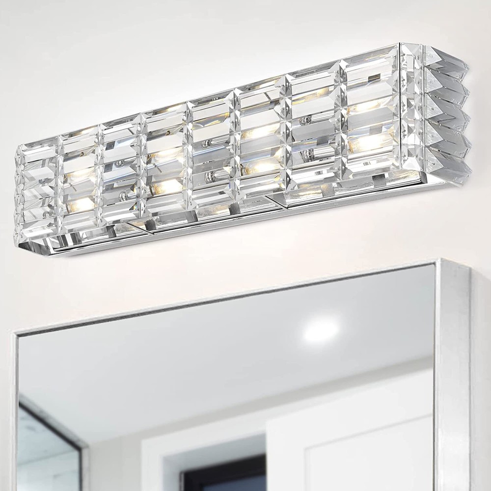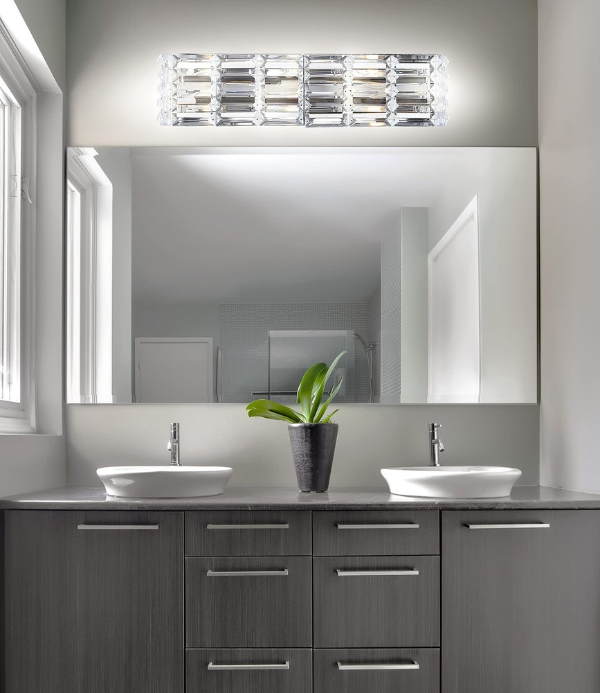 JONATHAN Y JYL7540A Evelyn Crystal Rectangle 24.25" 3-Light Iron/Crystal Glam Modern LED Vanity Light Classic 2700K LED 2W Bulbs Included Bathroom Hallway Living Room Bedroom Mirror Cabinet, Chrome Technical Details Brand JONATHAN Y Color Chrome Material Iron, Crystal Style 3-Light Light fixture form Vanity Room Type Entryway, Kitchen, Bathroom, Living Room, Hallway Product Dimensions 24.25"L x 5.13"W x 6"H Indoor/Outdoor Usage Indoor Power Source AC Special Feature Corded Control Method Remote Light Source Type LED Finish Type Polished Shade Material Crystal Number of Light Sources 3 Voltage 120 Volts Light Color Warm White Shape Rectangle Included Components Lighting Fixture Embellishment Crystal Lighting Method Adjustable Item Weight 8.8 Pounds Number of Items 1 Wattage 25 watts Bulb Base G9 Controller Type Push Button Unit Count 1.0 Count Brightness 420 Lumen Mounting Type Wall Mount Shade Color Clear Fixture Type Non Removable Assembly Required Yes Manufacturer JONATHAN Y UPC 840011412948 Recommended Uses For Product for Bathroom, Hallway, Living Room, Bedroom, Mirror Cabinet Model Name Evelyn Crystal Rectangle Modern LED Vanity Light Classic Glam Modern Transitional 2700K LED2W Item Weight 8.8 pounds Country of Origin China Item model number JYL7540A Size 3 Bulb Finish Polished Item Package Quantity 1 Number Of Pieces 1 Cutting Diameter 24.25 Inches Plug Format A- US style Special Features Corded Average Battery Life 50000 Hours Assembled Diameter 24.25 Inches QUALITY CONSTRUCTION: Wall light fixtures are used as general lighting; Available in amazing variety; Replacing old, outdated wall lights is a fast and affordable way to update your home design ENERGY-SAVING LED BULBS INCLUDED: LED bulbs are included with every light fixture; All of our lighting is ETL Listed and meets 120-volt UL standards for safety and quality; Professional installation is recommended for all wall light fixtures SATISFACTION GUARANTEED: Every JONATHAN Y design is created with uncompromising attention to detail, using only the highest quality components; Based in Soho, New York, designer Jonathan and his talented team create affordable high-end home decor Give your bathroom vanity an instant glam makeover with the sparkle of real crystal and chrome This 3-light fixture is perfect for a single sink in a large bathroom; or use one over each sink on a double vanity Crystal prisms are set like jewels into a long, glamorous vanity light with mid-century flair. Add vintage glam over a sink or vanity, for an Art-Deco-inspired bathroom. A sparking chrome finish makes this light perfect for contemporary bathrooms too. Shipping We offer FREE shipping on all orders! We ship within Three business days of payment, usually sooner. We use a selection of shipping services such as UPS, FedEx, USPS etc. We only ship to the lower 48 states, no APO/FPO addresses or PO Boxes allowed. Local pickups and combined shipping options are not provided at this time. Return You can return a product for up to 30 days from the date you purchased it. Any product you return must be in the same condition you received it and in the original packaging. Please keep the receipt. Payment We accept payment by any of the following methods: PayPal Please pay as soon as possible after winning an auction, as that will allow us to post your item to you sooner! Feedback Customer satisfaction is very important to us. If you have any problem with your order, please contact us and we will do our best to make you satisfied. Contact Us If you have any queries, please contact us via ebay. We usually respond within 24 hours on weekdays. Please visit our eBay store to check out other items for sale! Thank you for shopping at our store.