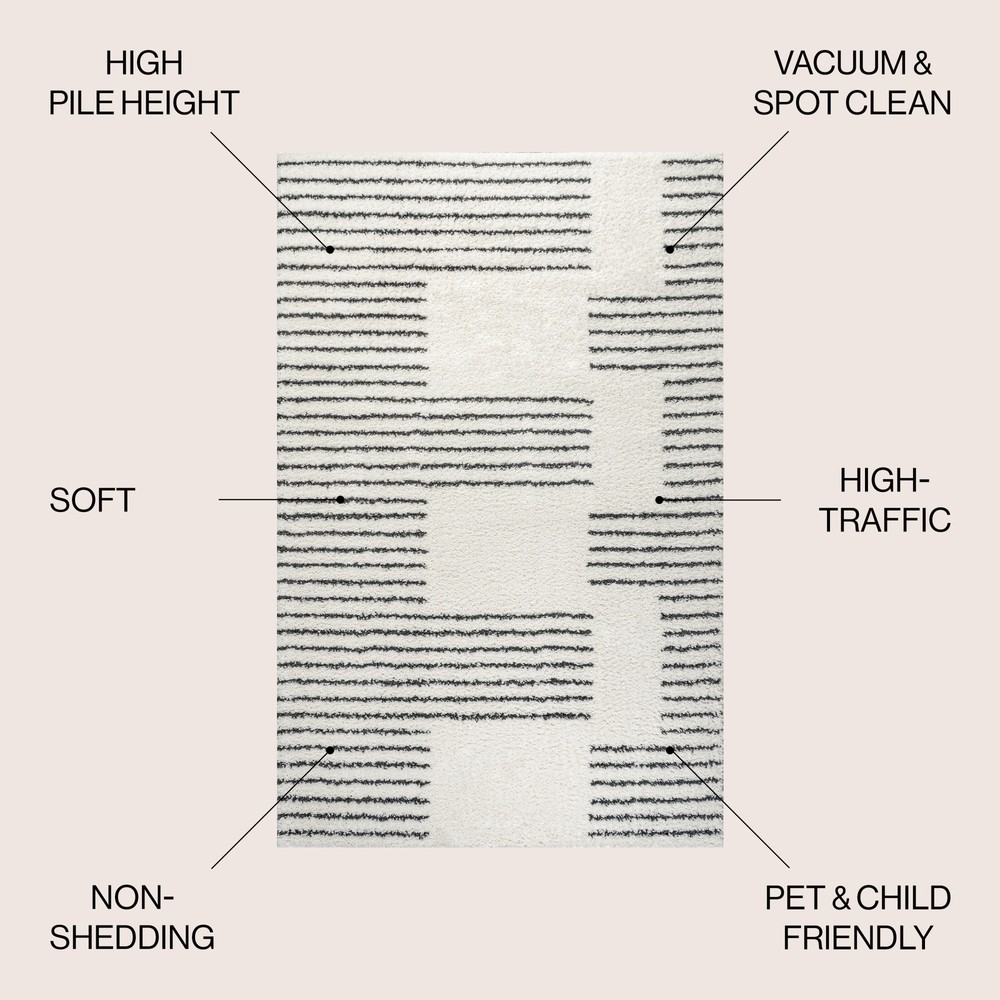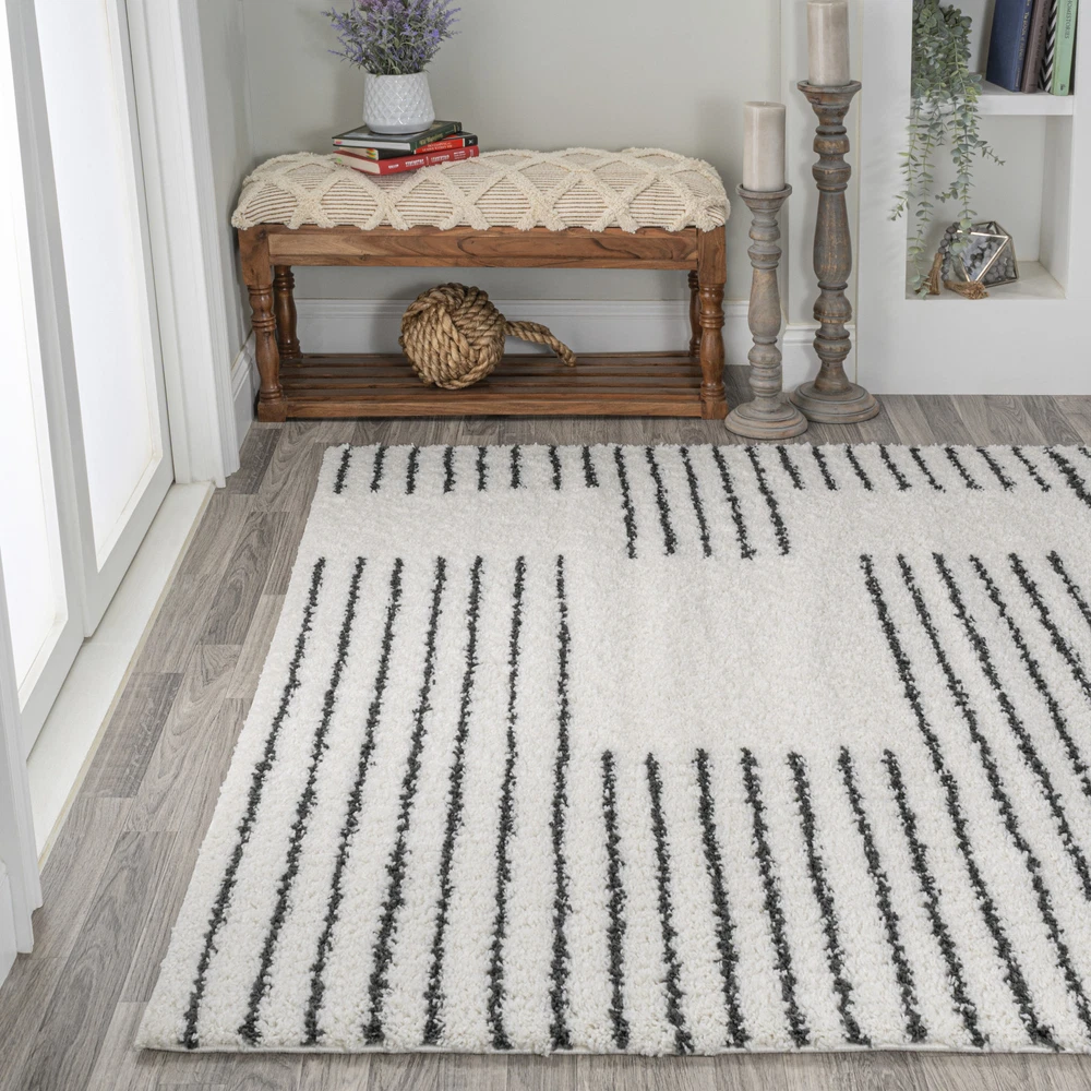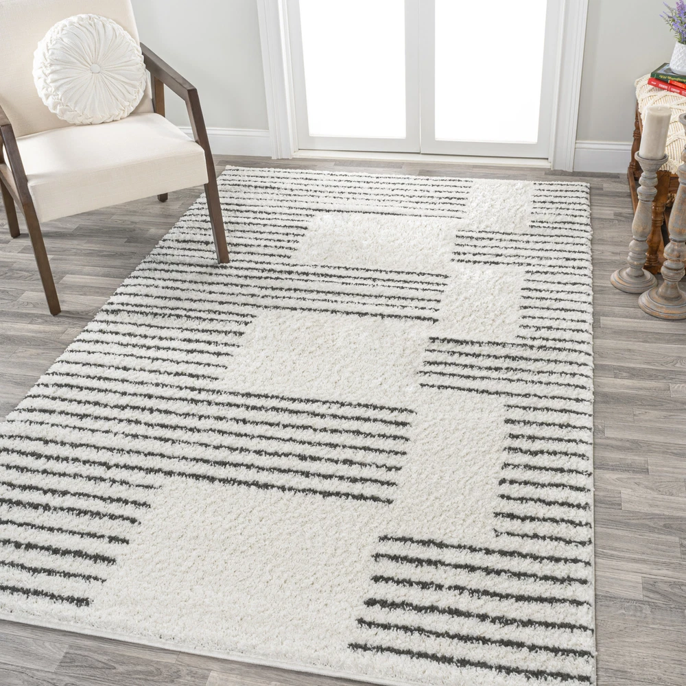 1. This rug adds instant style and cozy comfort to any space! The soft shag feels amazing underfoot, and the modern Moroccan-inspired stripes give it such a chic, versatile look. It’s perfect for layering in a living room or bedroom, and the no-backing design (with a rug pad) keeps it in place. Easy to care for yet so plush—love the mid-century geometric vibe!