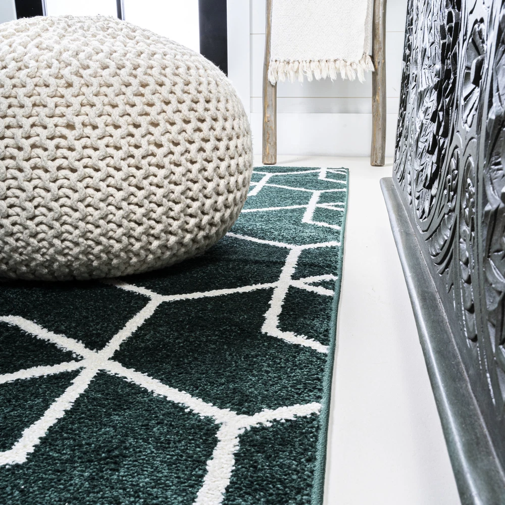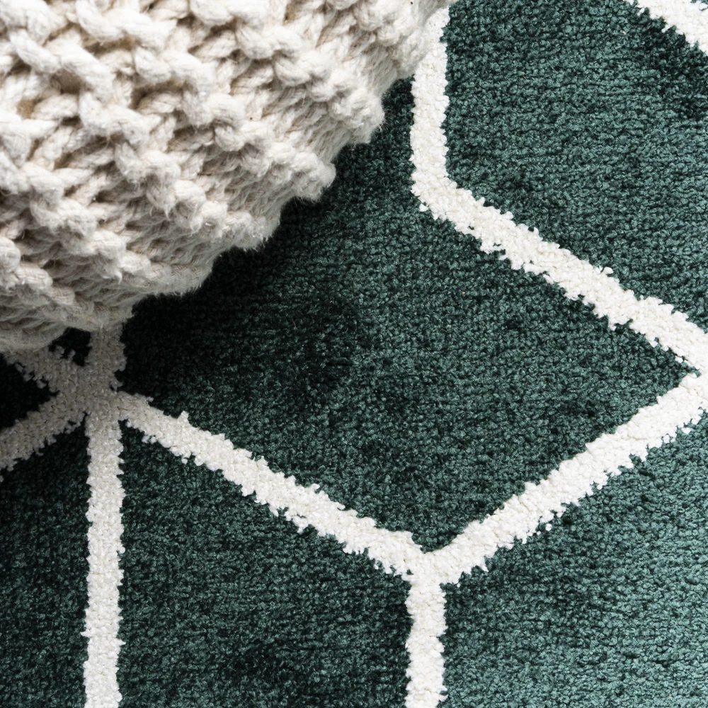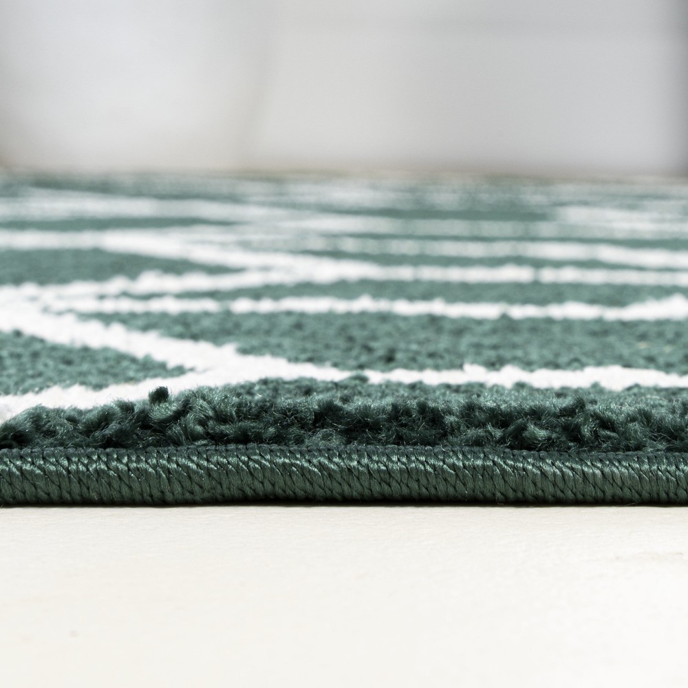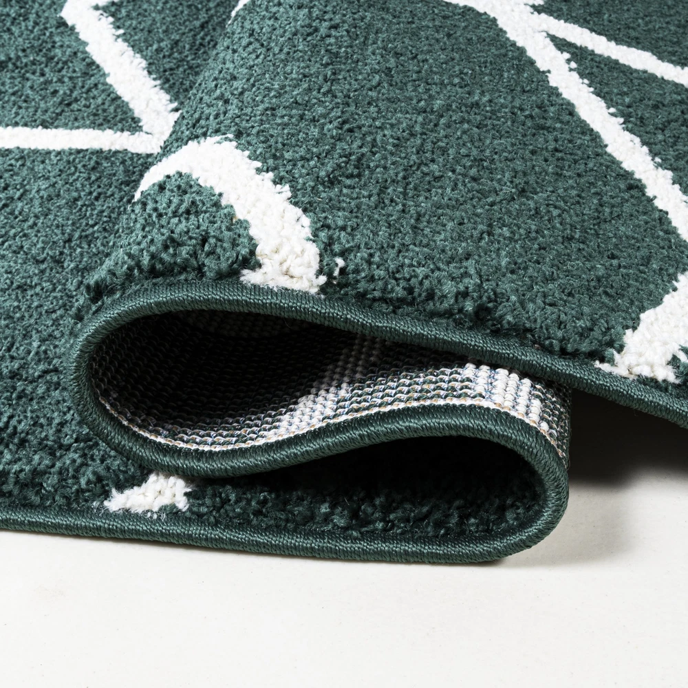 1. This rug is a game-changer! The mid-century geometric design in deep emerald green adds such a stylish pop to my living room. It's incredibly soft underfoot yet durable enough for my kids and pets. The flatweave makes cleaning spills a breeze, and the minimalist look works perfectly with my modern decor. I love how versatile it is—could easily work in a bedroom or hallway too. The quality feels premium, especially for the price. Definitely recommend for anyone wanting to elevate their space with a touch of retro-modern charm!