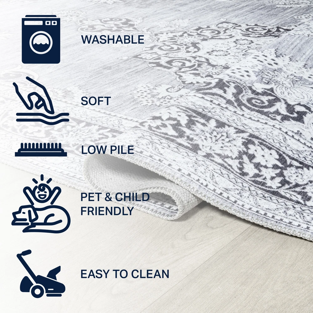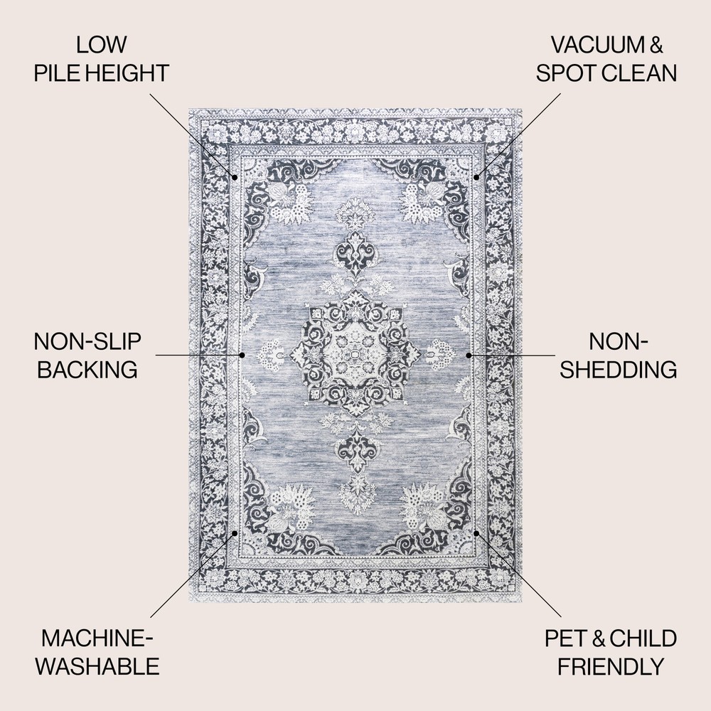1. I absolutely love this rug! The distressed medallion design adds a cozy boho vibe to my living room, and the chenille feels soft underfoot. It stays perfectly in place thanks to the non-slip backing, and I was thrilled to find out it's machine washable—so convenient! The thickness is just right, giving comfort without being bulky. Perfect for high-traffic areas since it holds up well. A stylish and practical choice!