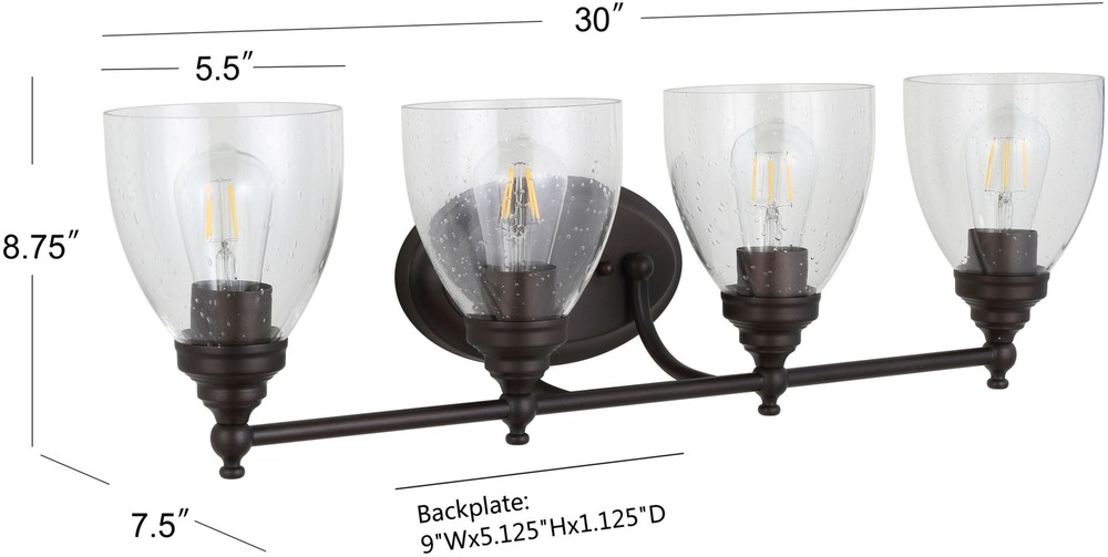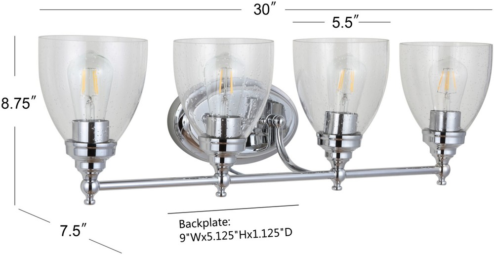 Powered by Frooition All Categories JONATHAN Y Lighting JYL7471 JYL Marais 4 Light 30" Wide LED Bathroom Vanity Light Overview Item Description Features Constructed from non-oxidizing metal Includes seedy glass shades (4) 60 watt maximum medium (E26) LED bulbs included Mountable in different orientations Vintage Edison bulbs included ETL rated for damp locations Meets California Title 24 energy standards Covered under a 30 day manufacturer warranty for defects only Dimensions Height: 8-3/4" Width: 30" Extension: 7-1/2" Product Weight: 8.36 lbs Shade Height: 5-3/4" Shade Width: 5-1/2" Shade Depth: 5-1/2" Backplate Width: 9" Backplate Depth: 1-1/8" Electrical Specifications Max Wattage: 240 watts Number of Bulbs: 4 Max Watts Per Bulb: 60 watts Lumens: 420 Bulb Base: Medium (E26) Bulb Shape: ST58 Bulb Type: LED Color Temperature: 2700K Color Rendering Index: 80CRI Bulbs Included: Yes Why Choose BuildInc? OUR PROMISE TO YOU About Us At Build, we promise to provide the best selection we can, most competitive pricing, and unmatched customer service. Our store has quality home improvement products from trusted manufacturers like Moen, American Standard, Delta, Kraus, Kichler, Progress Lighting, Schlage, Kwikset, Baldwin, Broan, NuTone, Air King, and Rev-A-Shelf. With over 200,000 home improvement products for you to choose from, we have just what you need to get your project done. Fast & Free Shipping We promise to make it our priority to get you your items as fast as we can. We ship from 440 warehouses around the country, ensuring that your product will get to you as soon as possible. We know you're eager to get your hands on your new purchase, we would be too. As a bonus, most items ship for free. Returns We are happy to accept returns of unused or defective items for a refund within 30 days from the date of delivery. For returns outside 30 days, please contact our Customer Service team to go over our options. For full details, please view the Shipping and Payments tab above. To initiate a return simply go to the eBay Returns Portal and submit a return request. We ask that all items be returned with all original components via a traceable method. Once your return is received and processed, we will quickly get your refund or replacement issued. If for any reason you are unsatisfied with your purchase or for product or warranty questions, please contact Customer Service team for assistance. More Items! View more great items! About Us | Shipping | Returns | Contact Us | FAQ | Collections | Special Offers! Powered by Frooition Frooition Frooition | No-js Template | eBay design, eBay store design, eBay shop design, eBay template design, eBay listing design (ver:froo_no_js) This listing is currently undergoing maintenance, we apologize for any inconvenience caused.
