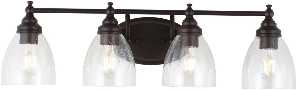 This vanity light is absolutely stunning! The vintage Edison bulbs give off a warm, inviting glow, and the seedy glass shades add a touch of elegance. Installation was easy, and the build quality feels solid. Perfect for bathrooms—bright yet stylish. Love that it meets energy standards too! Highly recommend.