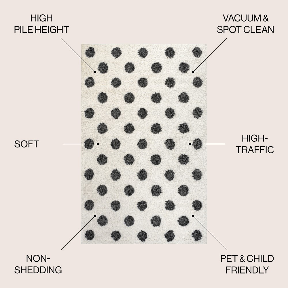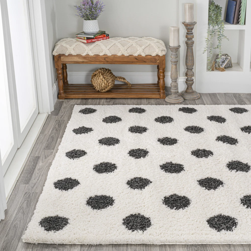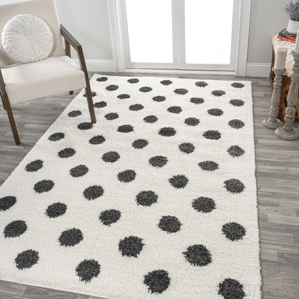 This rug is absolutely stunning—soft, plush, and the perfect blend of modern and boho style. The gray-on-ivory polka dot pattern adds just the right amount of personality without being overwhelming. It feels amazing underfoot, and the low shag pile makes it cozy yet easy to maintain. Perfect for my living room, where it added instant warmth and texture. The size (4'x6') is great for layering or anchoring a small seating area. Plus, polypropylene means it's durable and resists stains. Love the mid-century vibe—total game-changer for my space!
