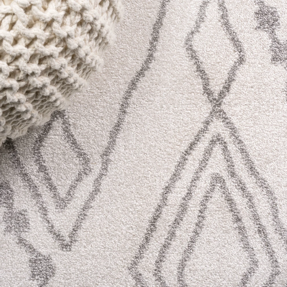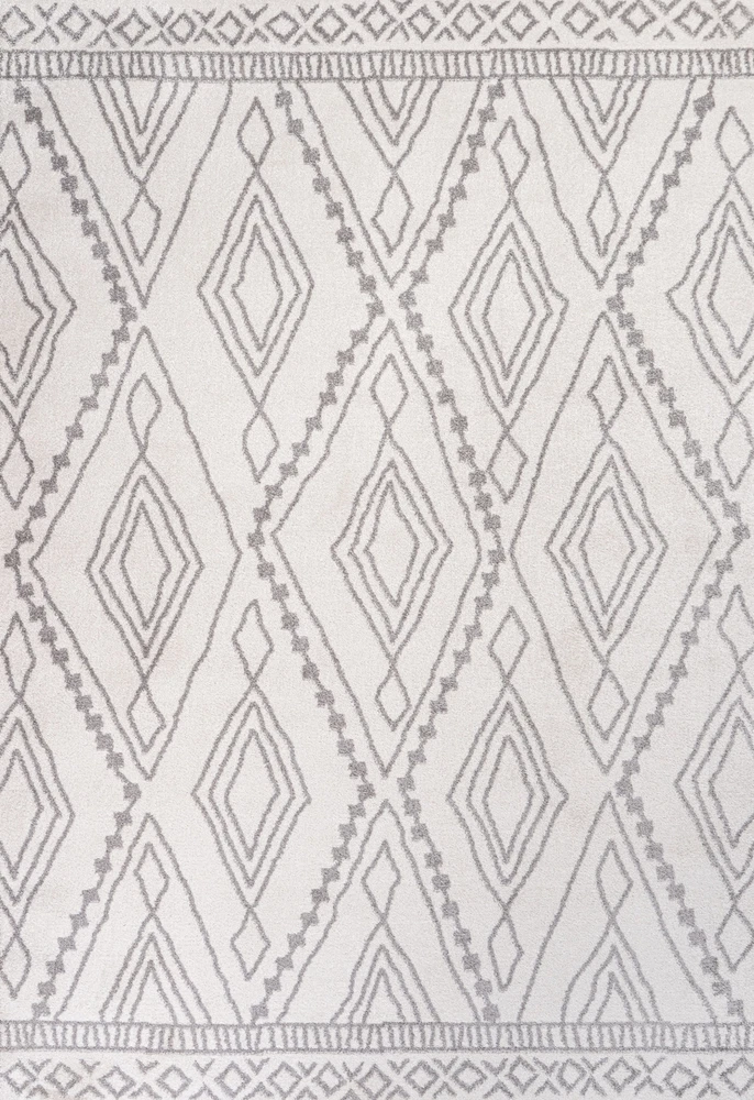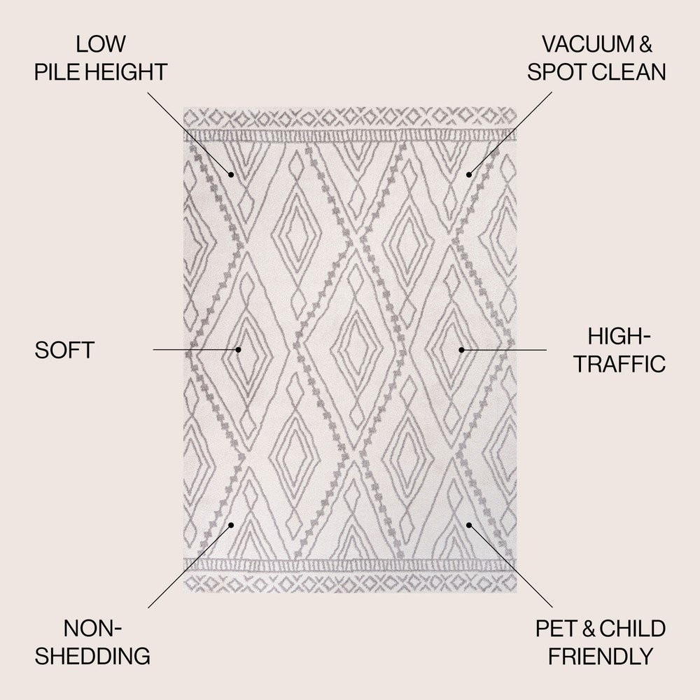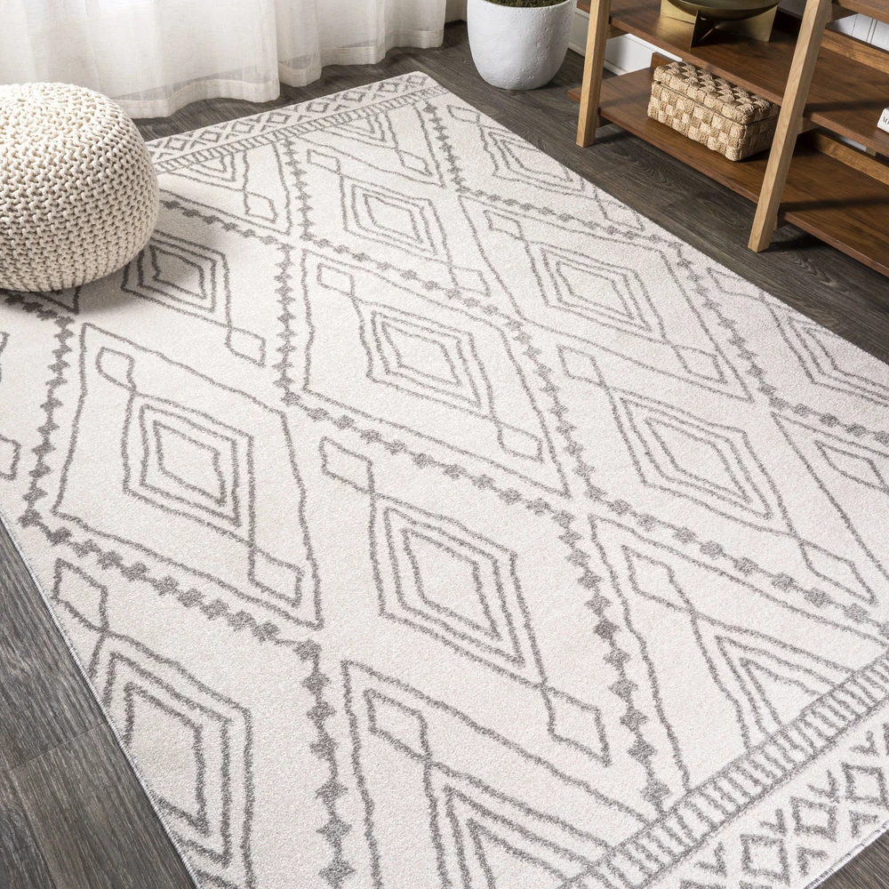 1. This rug is a stunning blend of bohemian charm and modern durability! The soft, low-pile polypropylene feels great underfoot while the intricate gray diamond trellis design on an ivory background adds elegant texture to any room. Perfect for high-traffic areas like living rooms or entryways, it’s easy to clean and holds up beautifully. The vintage Moroccan-inspired pattern brings warmth and character without overwhelming the space. I love how it ties my boho-chic decor together—such a versatile, stylish, and practical find!