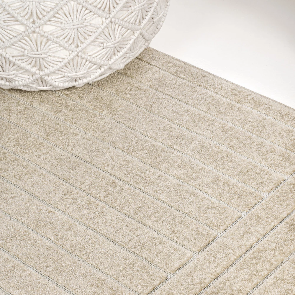 Love this rug! The modern geometric design instantly upgrades any space, and the high-low texture makes it visually interesting yet super soft. Perfect for both indoor and outdoor use—holds up well to foot traffic and is easy to clean. The minimalist Scandi style blends seamlessly with my decor. Highly recommend for a stylish, practical touch!