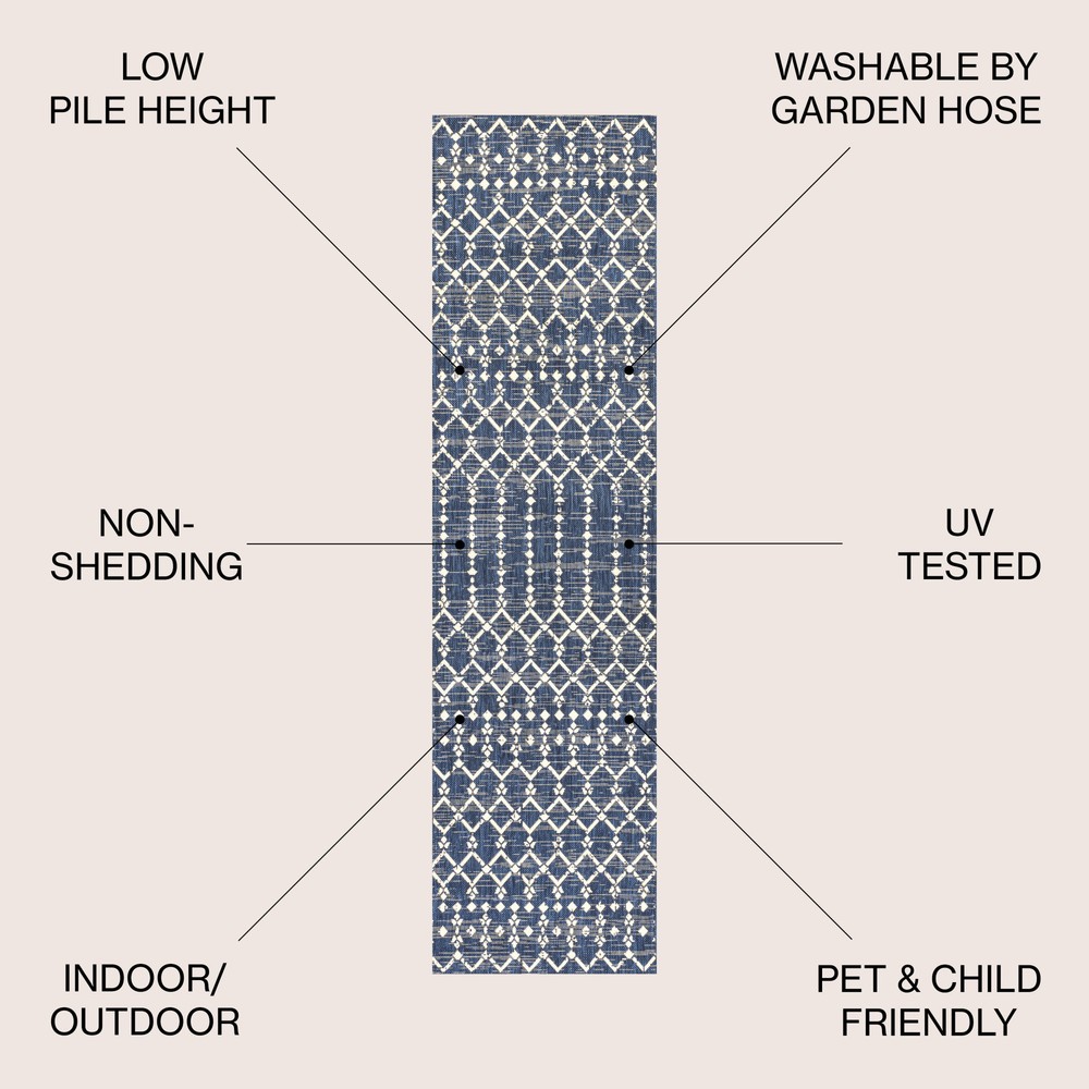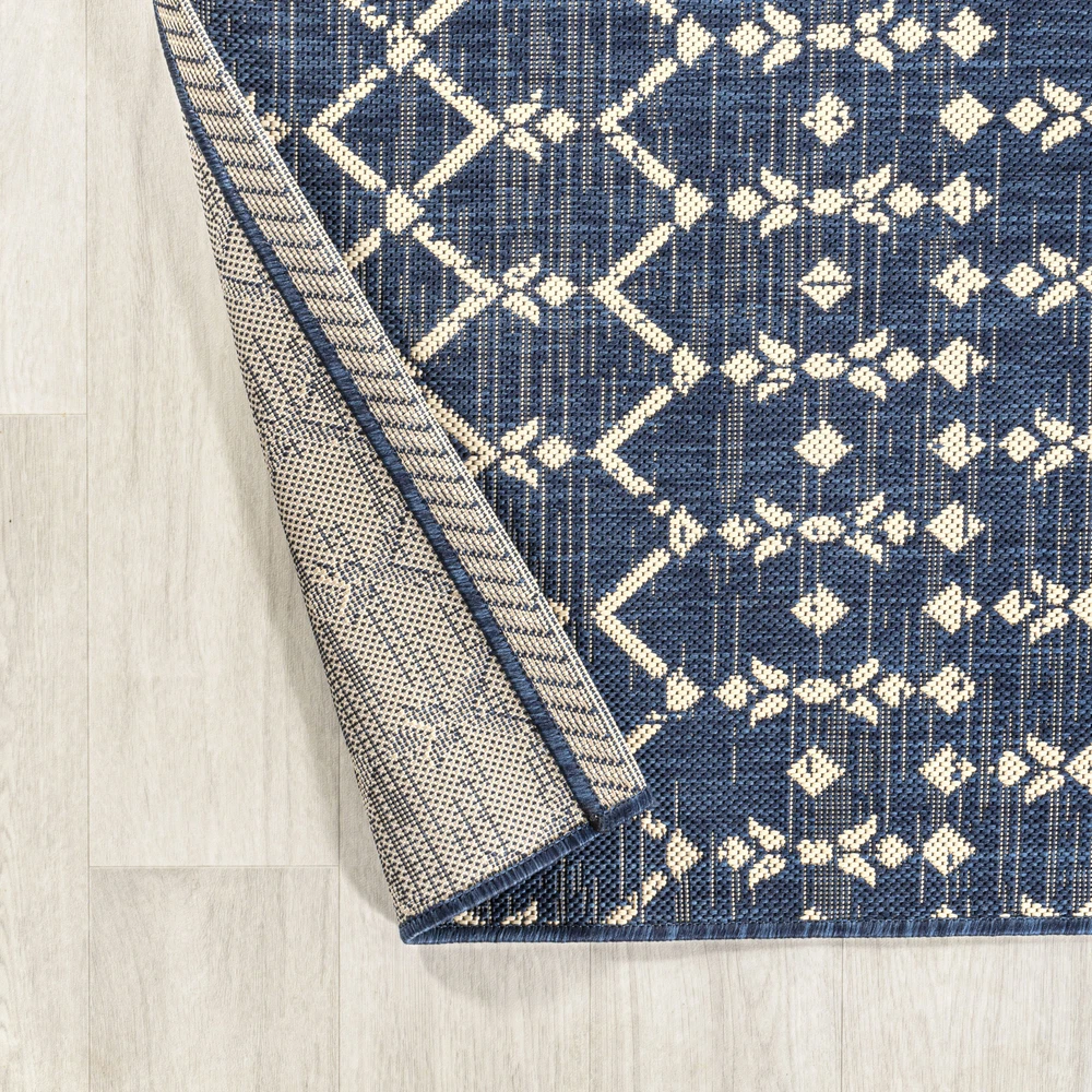 This vibrant Moroccan-inspired rug instantly brightens any space! The bold geometric pattern and multi-color design add a fun, bohemian touch to porches, patios, or sunrooms. Made from durable polypropylene, it handles outdoor conditions well while maintaining its eye-catching colors. The lightweight flat-weave construction makes it easy to move or clean. Perfect for adding personality to outdoor entertaining areas!