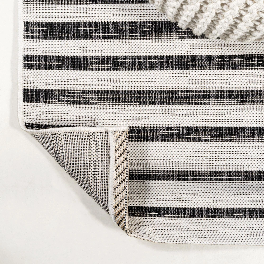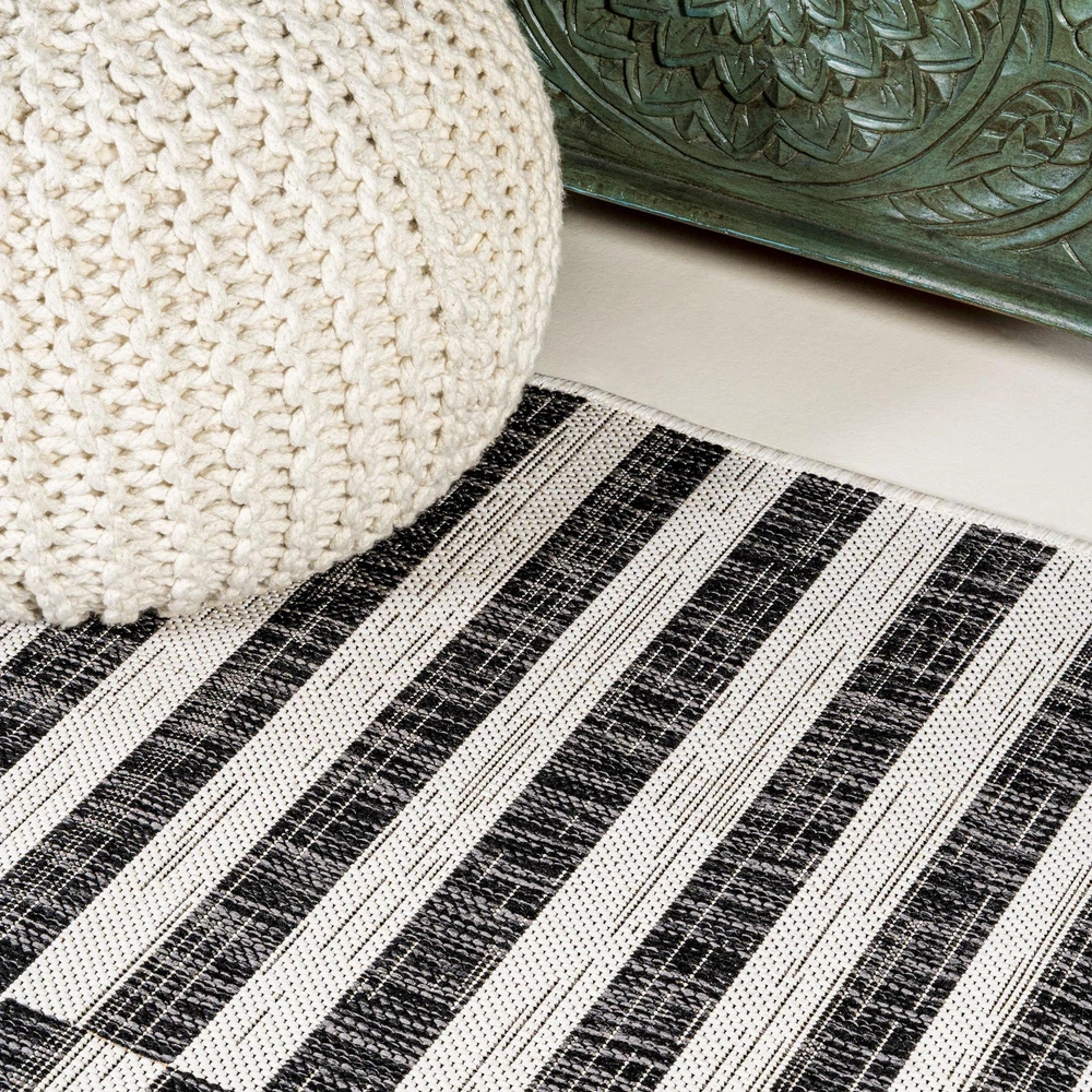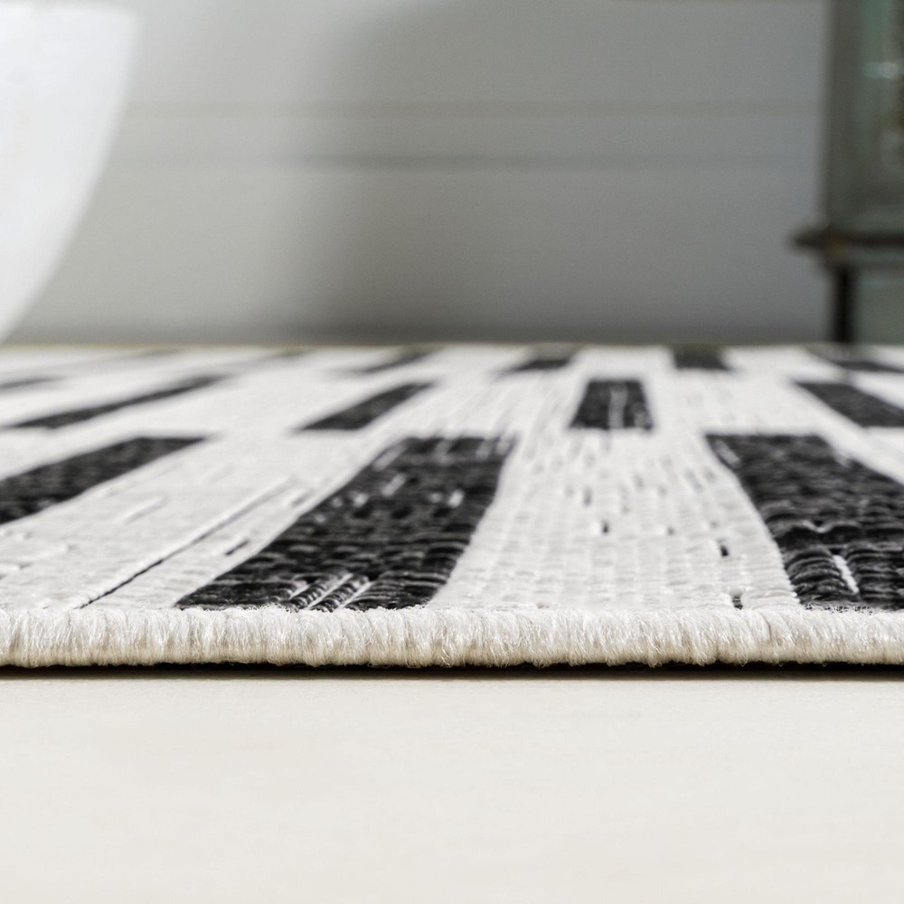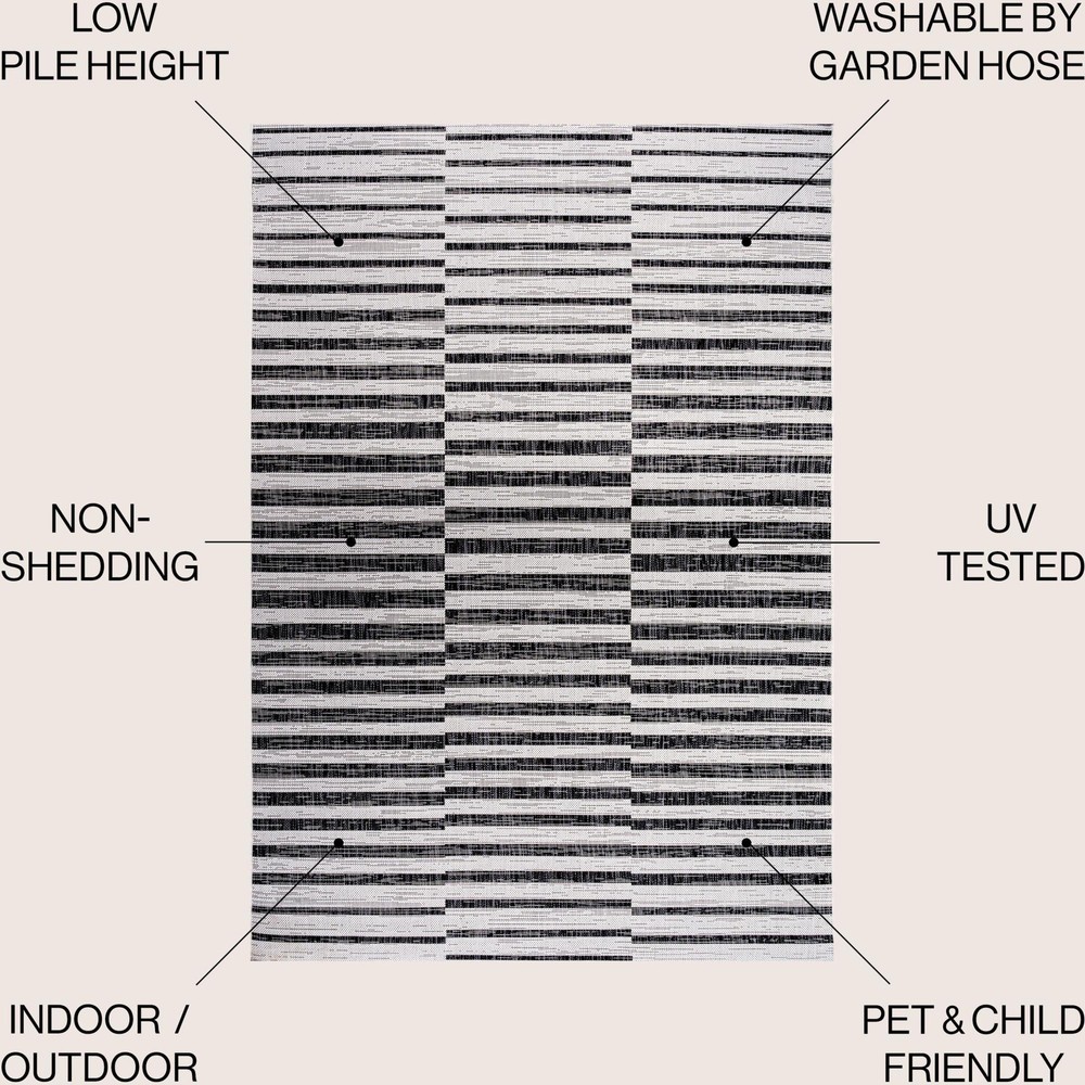 1. This rug is a game-changer! The soft, low-pile polypropylene feels great underfoot and the offset stripes add a stylish mid-century vibe. Perfect for indoor or outdoor use, it’s durable, easy to clean, and instantly elevates any space. The ivory and black color combo is timeless—works in living rooms, bedrooms, or even entryways. Love how versatile and chic it is!