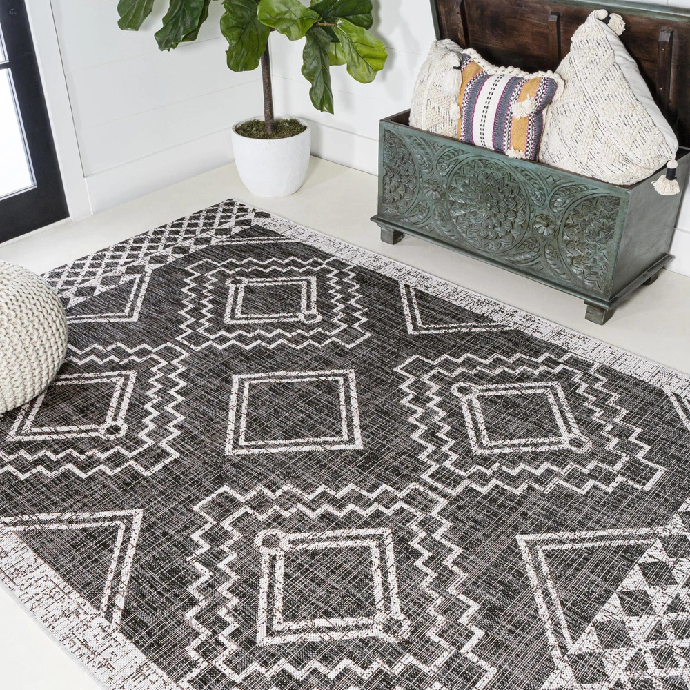 1. This rug is stunning—the geometric pattern and boho-chic vibe instantly elevate any space. The black and ivory color combo blends seamlessly, while the soft polypropylene makes it durable yet comfortable. Perfect for indoor or outdoor use, it adds a stylish touch to living rooms, bedrooms, or patios. Highly recommend for anyone looking to add bold, tribal-inspired flair!