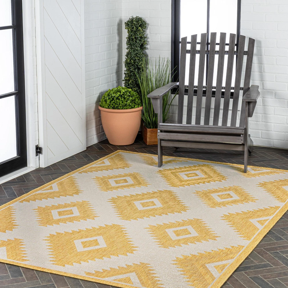 1. Absolutely love this rug! The vibrant colors and eye-catching geometric design instantly brightened up my patio. It's soft yet durable, handles foot traffic well, and still looks fresh after a few washes. Perfect balance of style and functionality—works great indoors or out. Highly recommend for anyone wanting a pop of boho charm!