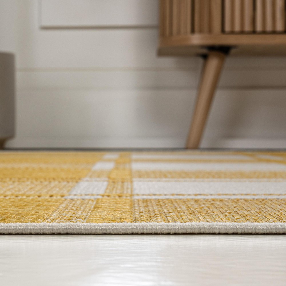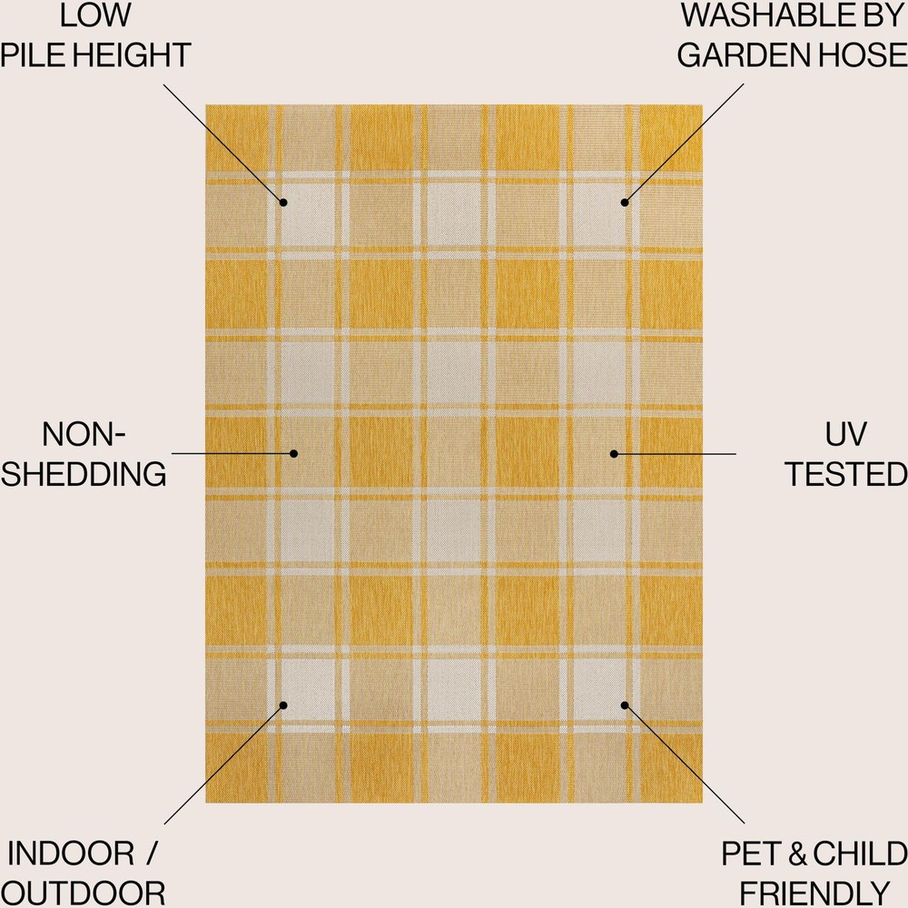 Absolutely love this rug! The vibrant Tuscan Sun colors brighten up any space, indoors or out. The polypropylene fabric is super durable and easy to clean—perfect for high-traffic areas. The geometric plaid design adds a charming cottage vibe, and the size is just right for cozying up a room or porch. Great quality for the price, highly recommend!