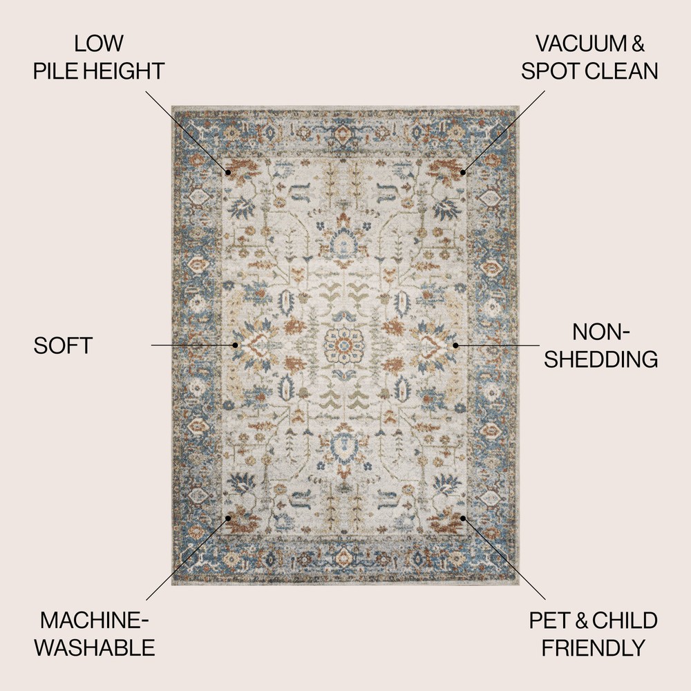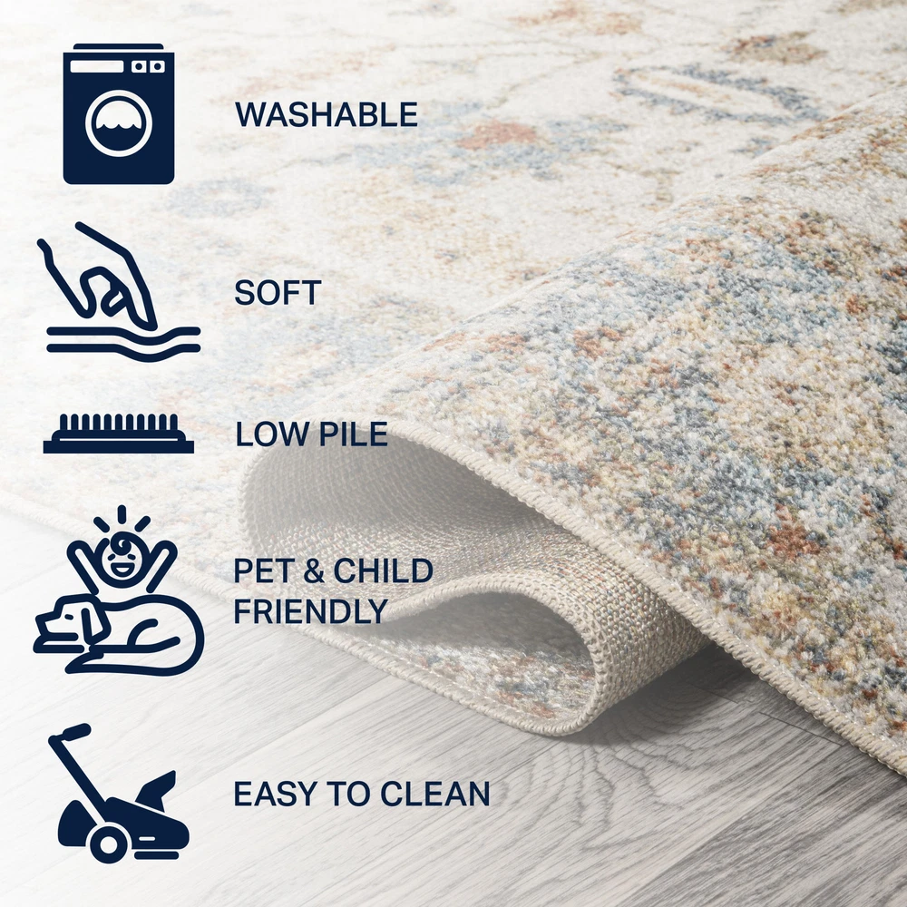 1. Love this rug! The vintage Persian design brings charm to my living room, and the cream/terra colors blend perfectly with my decor. The low-pile polyester is soft yet durable, and machine washable is a huge plus for easy cleaning. Even without backing, it stays in place with a rug pad—highly recommend for a stylish, practical upgrade!