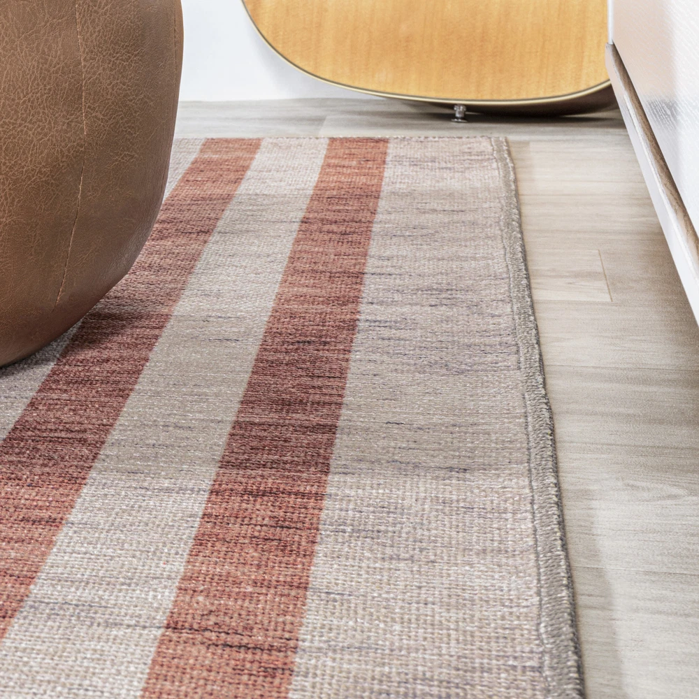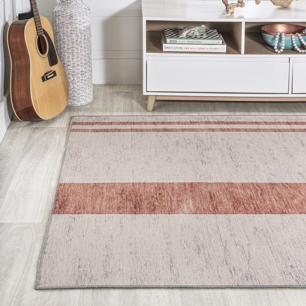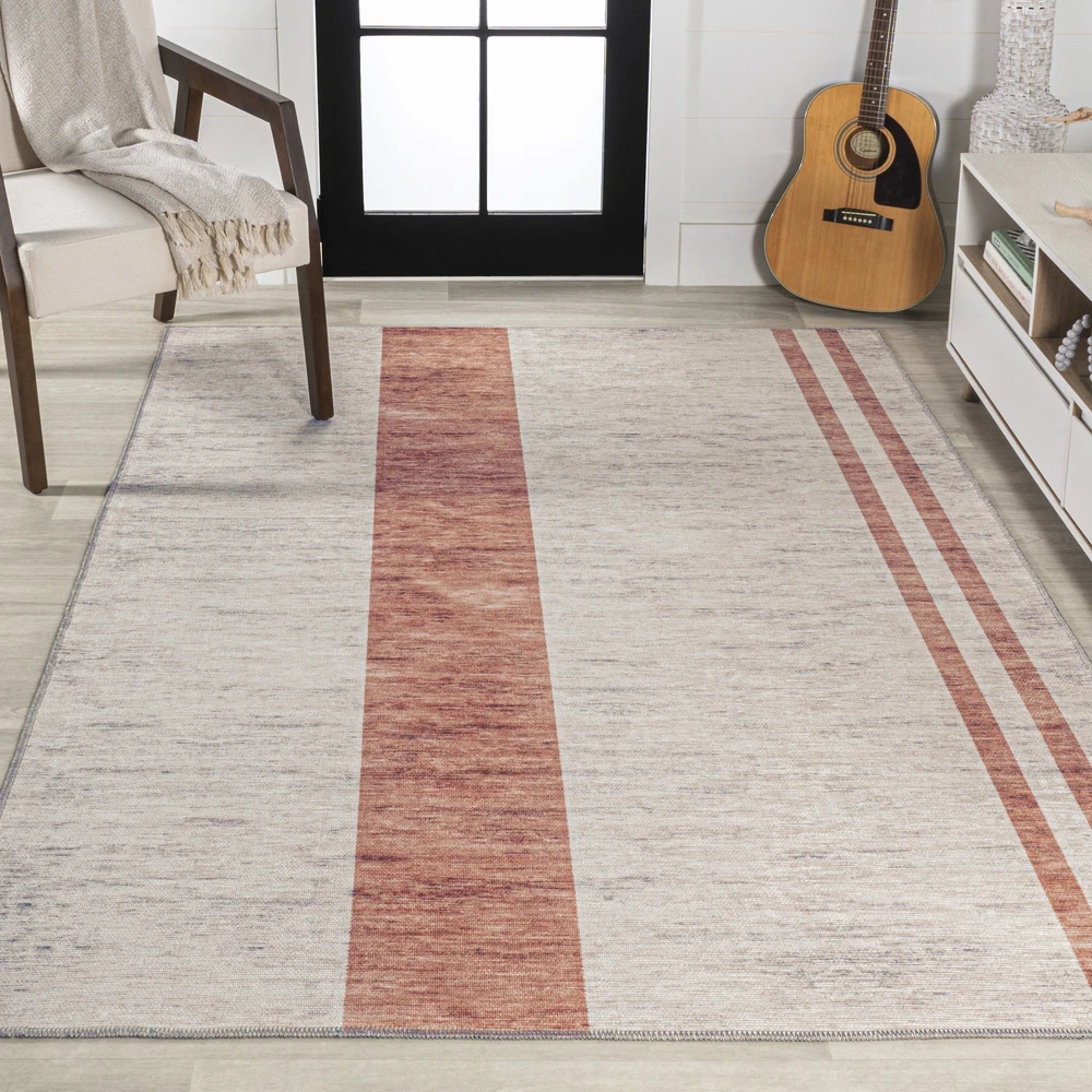 1. This rug is a game-changer! The bold stripes add a stylish pop to any room, and the soft polypropylene feels great underfoot. Love that it’s machine-washable—perfect for busy homes. Durable, vibrant, and super easy to clean, it’s a must-have for modern spaces. Highly recommend!