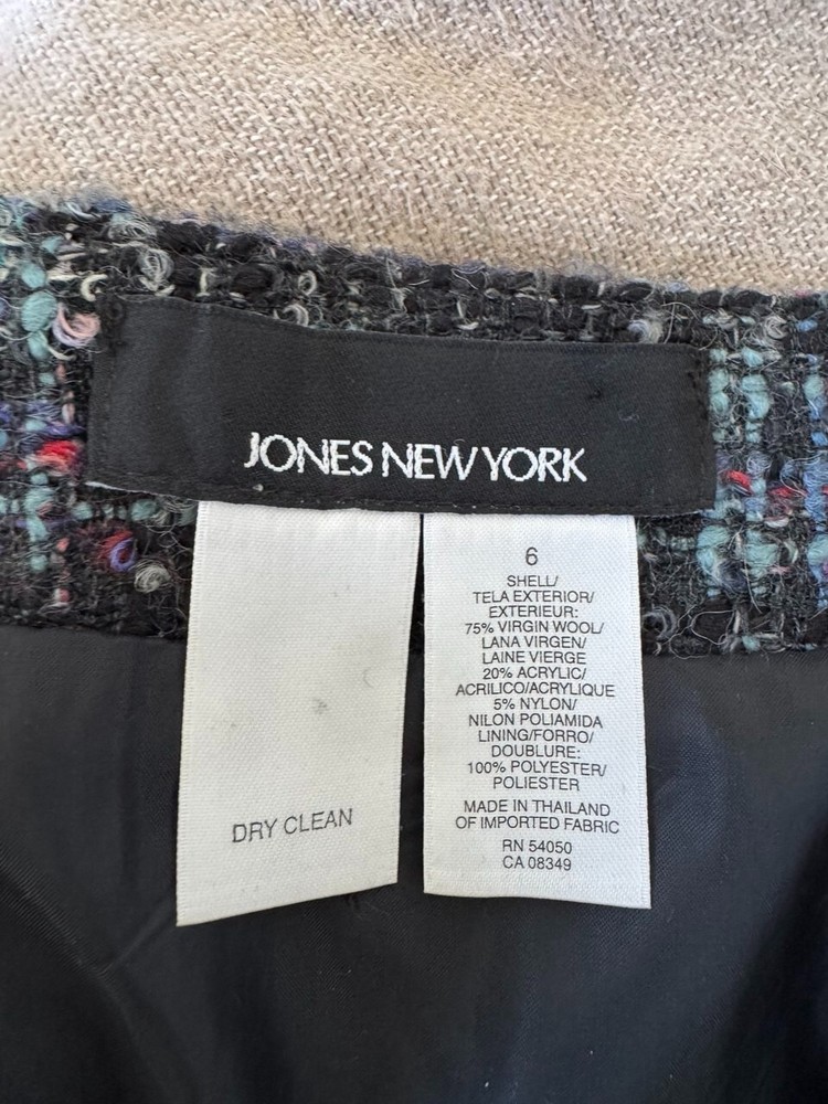 This Jones New York Wool Black Tweed Tulip Skirt in size 6 is a versatile and stylish addition to any woman's wardrobe. The skirt features a classic black color with a tweed fabric type, making it perfect for casual, workwear, or business occasions. It has a mid-rise and a midi length, featuring a tulip style that is both flattering and chic. The skirt is lined and should be dry cleaned only to maintain its quality. Made in Thailand, this skirt is a timeless piece that can be worn in winter, fall, and spring.