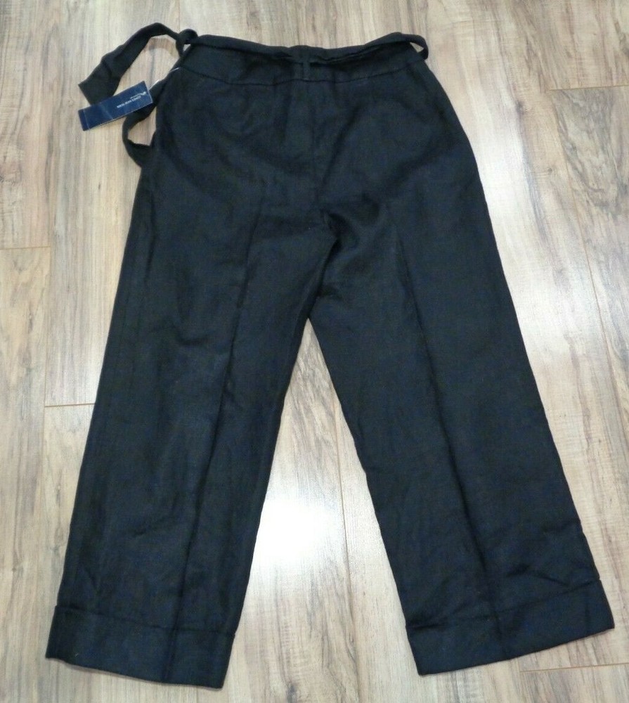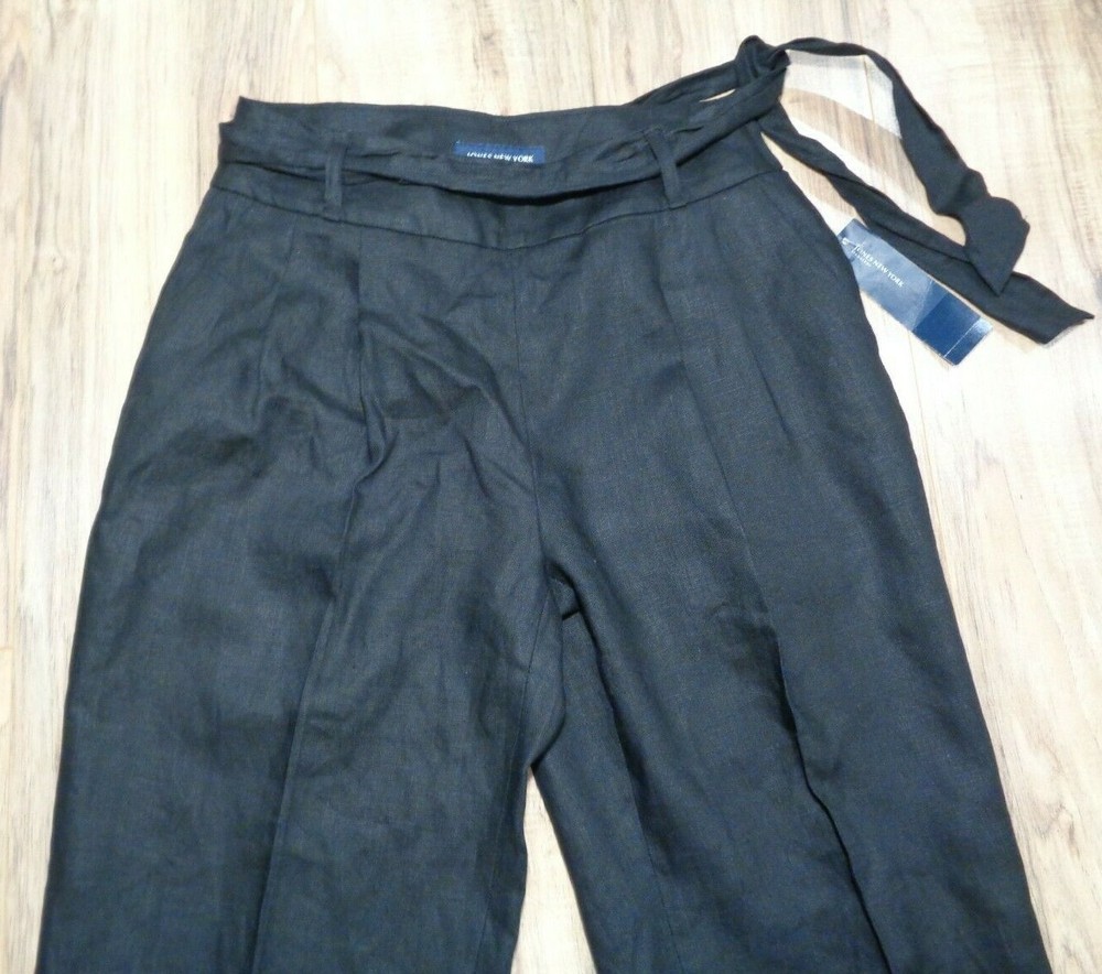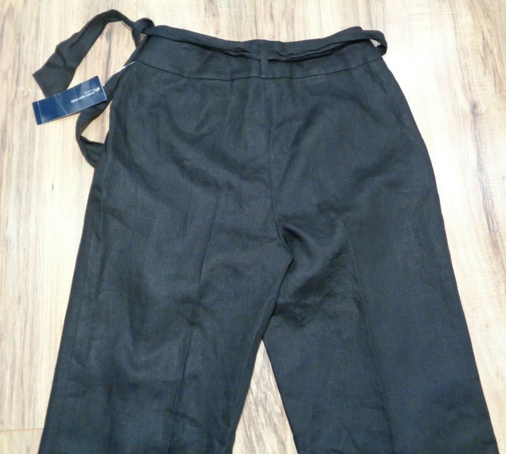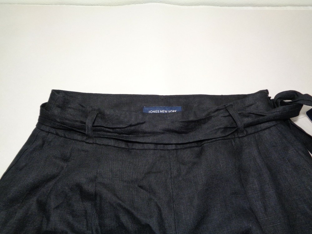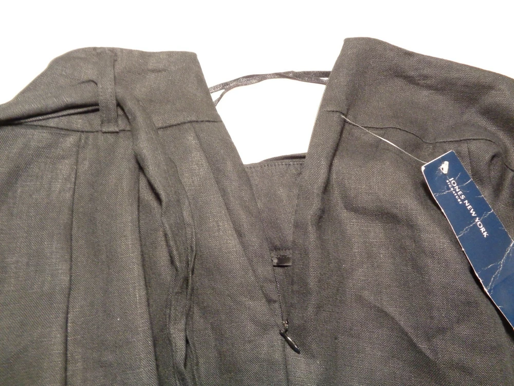 Jones New York Size 4 Black Linen New Women's Pleated Pants Color: Black 100% Linen Pleated front 2 front pockets Left hip zip closure(8 inch length) Removable belt Belt loops Cuffed hem Machine Washable Waist approximately 30 inches Rise approximately 12 inches Inseam approximately 25 inches