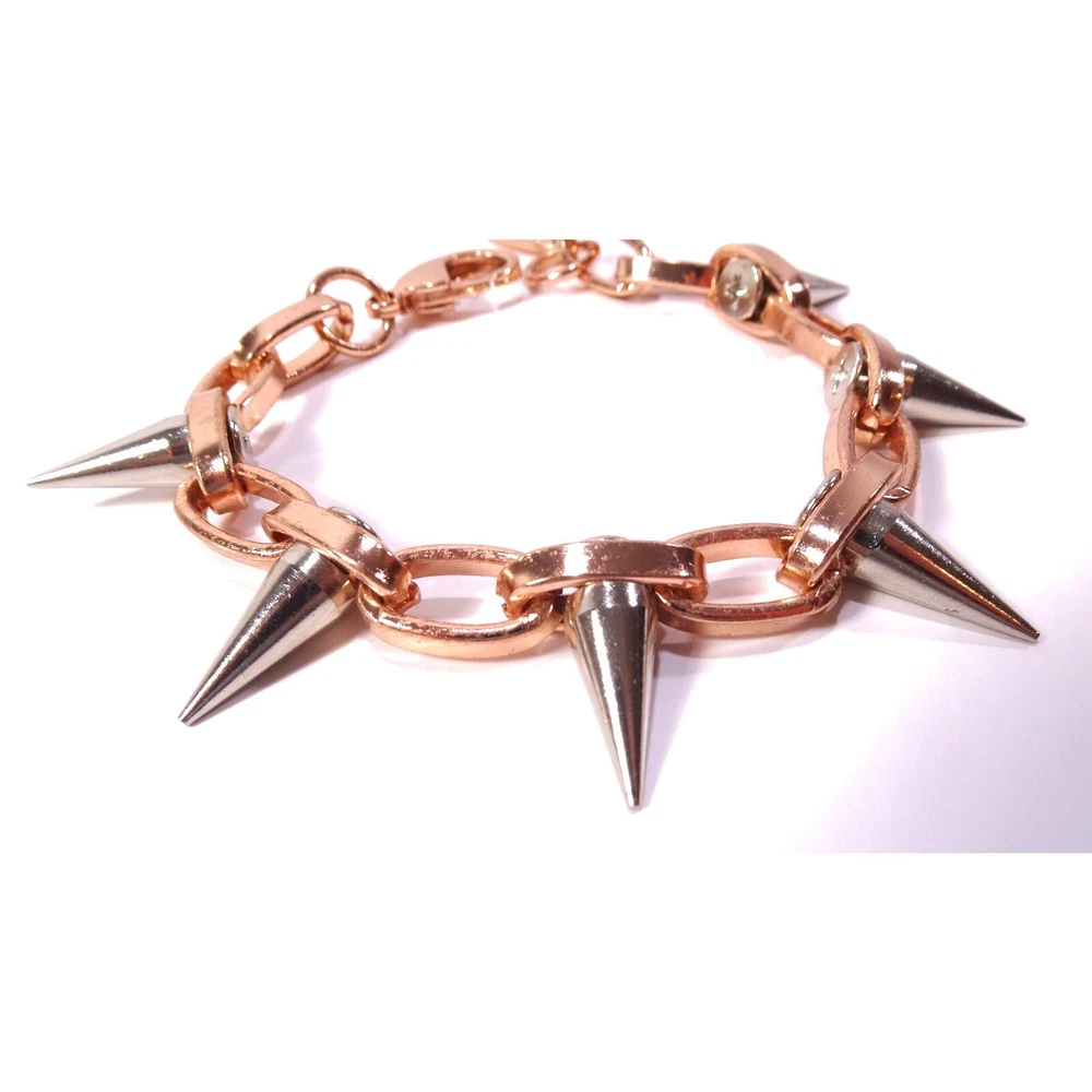 JOOMI LIM Single Row Spike Bracelet NWOT $159.00 Sold Individually Rose gold /rhodium SILVER Jommi Lim Chain and Spike Rose Gold and SILVER SPIKE plated bracelet. 3/4" Spikes in Holographic Blue. Measures 6 1/2" or with extension 7 1/2" ROSE GOLD AND SILVER CLASSIC JOOMI LIM CHARMED BRACELET STYLE DEFINING BRACELET In 2009, New York-based wife & husband duo Joomi Lim and Xavier Ricolfi launched a collection of daring, high-fashion jewelry that could easily be called rock-n-roll chic. Joomi's sensibility lends feminine and intricate details to the collection, while Xavier's industrial designer roots bring in unusual materials, finishes and cutting-edge technologies. Together, they create playful jewels with juxtaposing styles of hard-soft, sweet-sleek, uptown-downtown, and glam-rock. Equal parts elegant and edgy, this necklace will set the tone for any outfit and instantly elevate any look. We particularly like taking it out of its usual glamorous cocktail setting and wearing it with a simple t-shirt and jeans for unexpected polish.