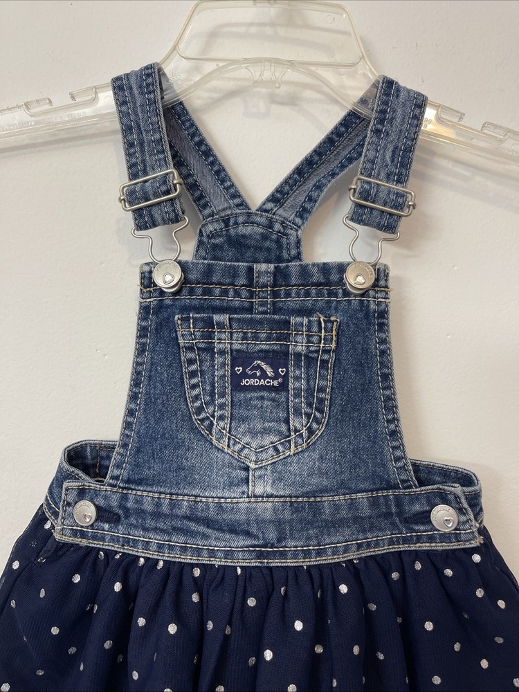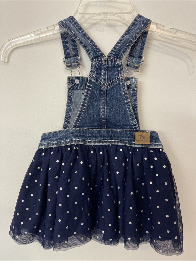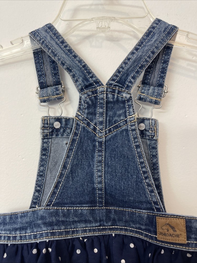 Girls 2t Blue Denim Cotton-Blend Sleeveless Overall Dress! A5416