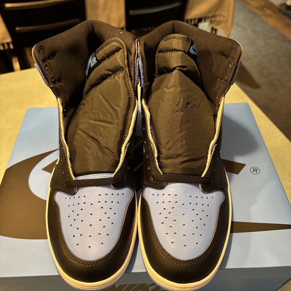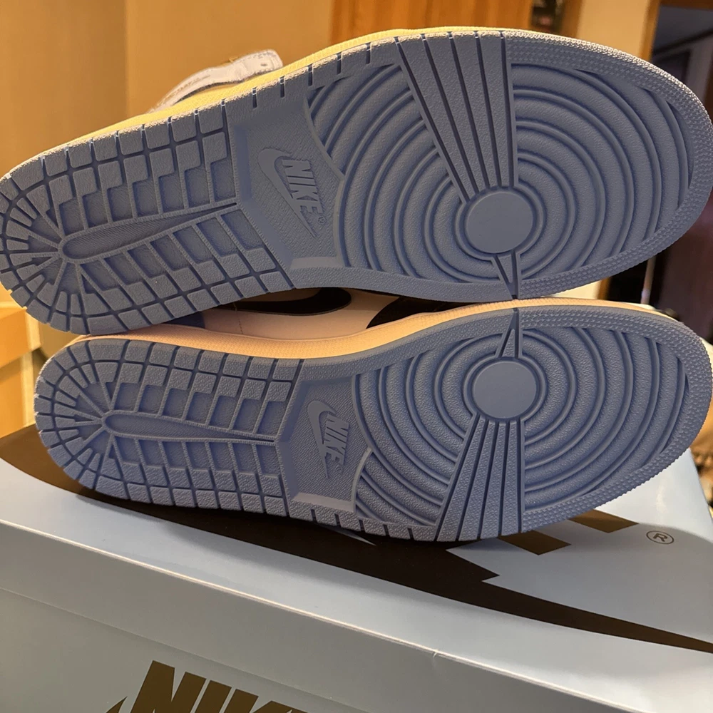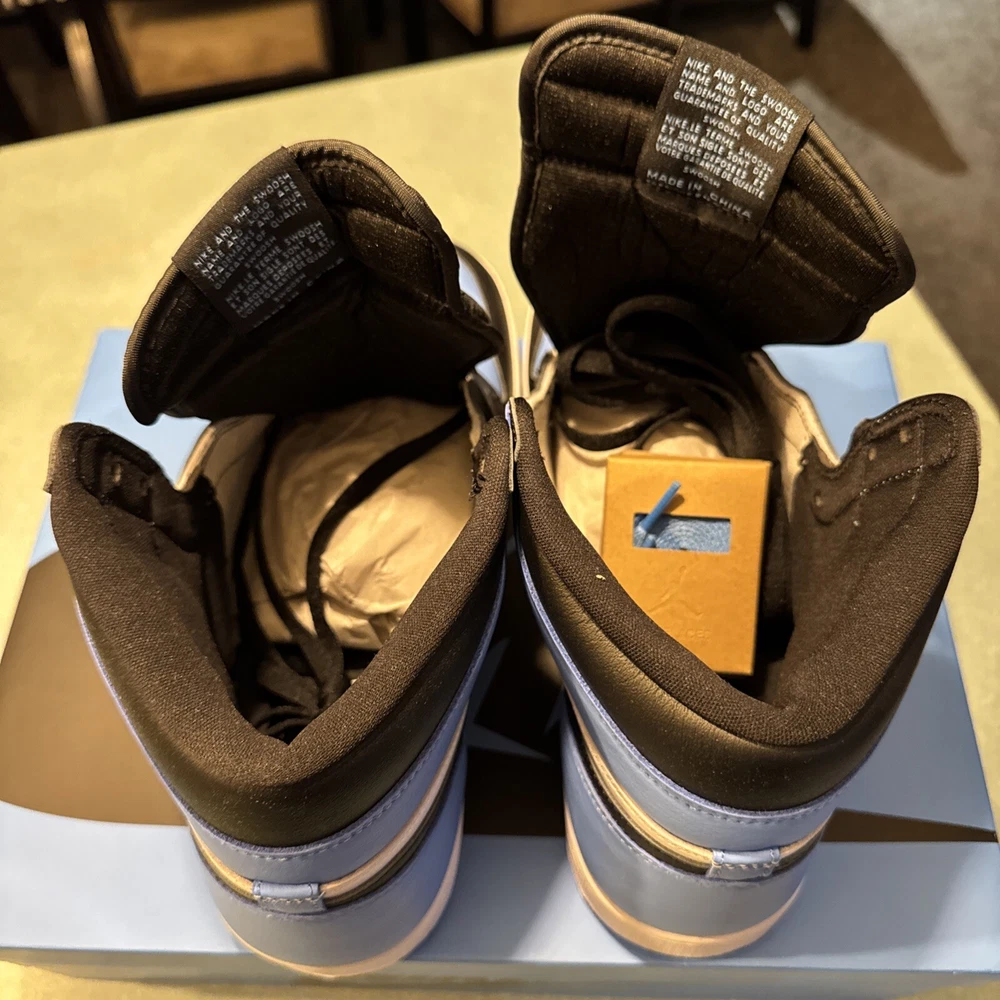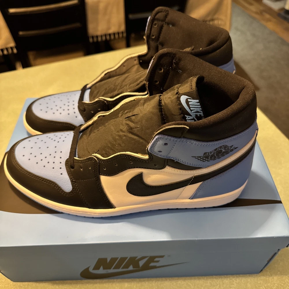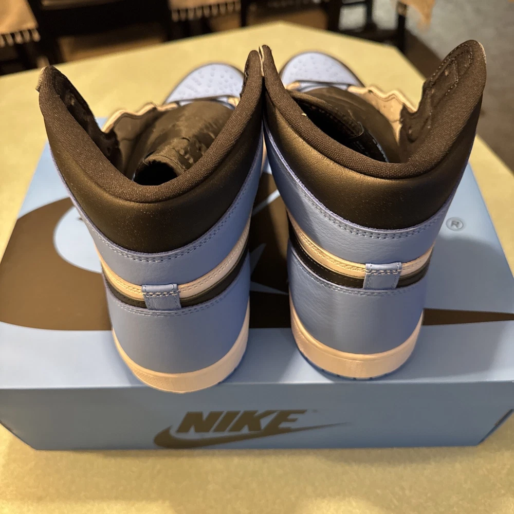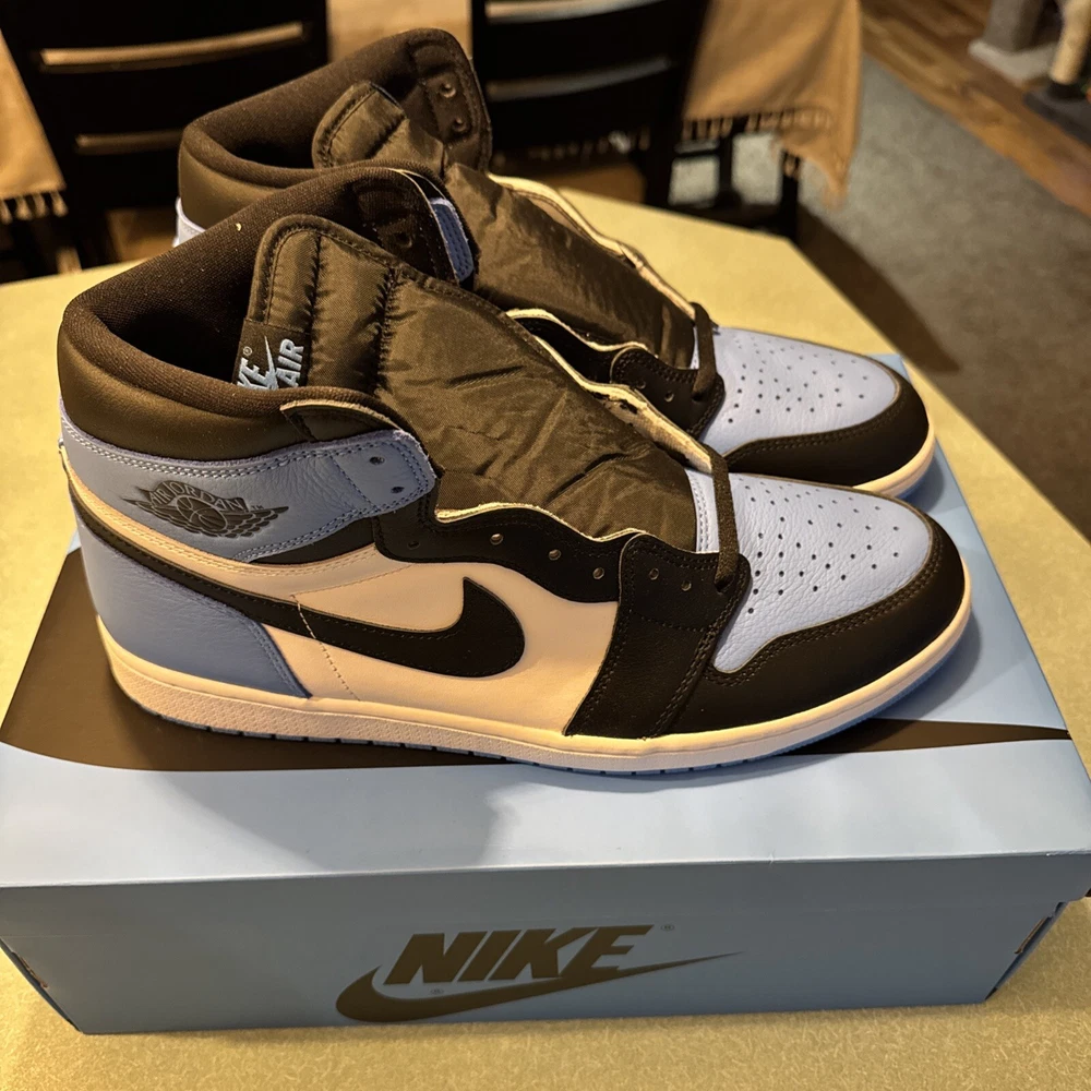 The Jordan 1 High OG UNC Toe is taking the sneaker game by storm. Jordan Brand masterfully integrates a unique colorway combo of University Blue, Black, and White on this iconic silhouette. The Jordan 1 High OG UNC Toe showcases University Blue on the toe box and heel, which perfectly contrasts with the crisp White leather on the mid-panel and Black on the Swoosh and ankle collar. These kicks sit on a clean white midsole, offset by a vibrant University Blue outsole, creating an impressive visual balance.