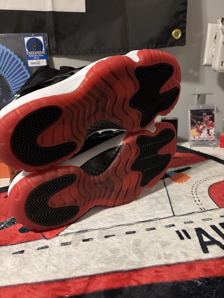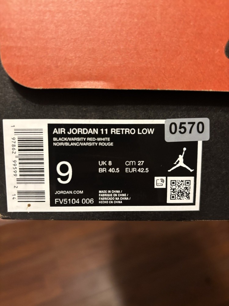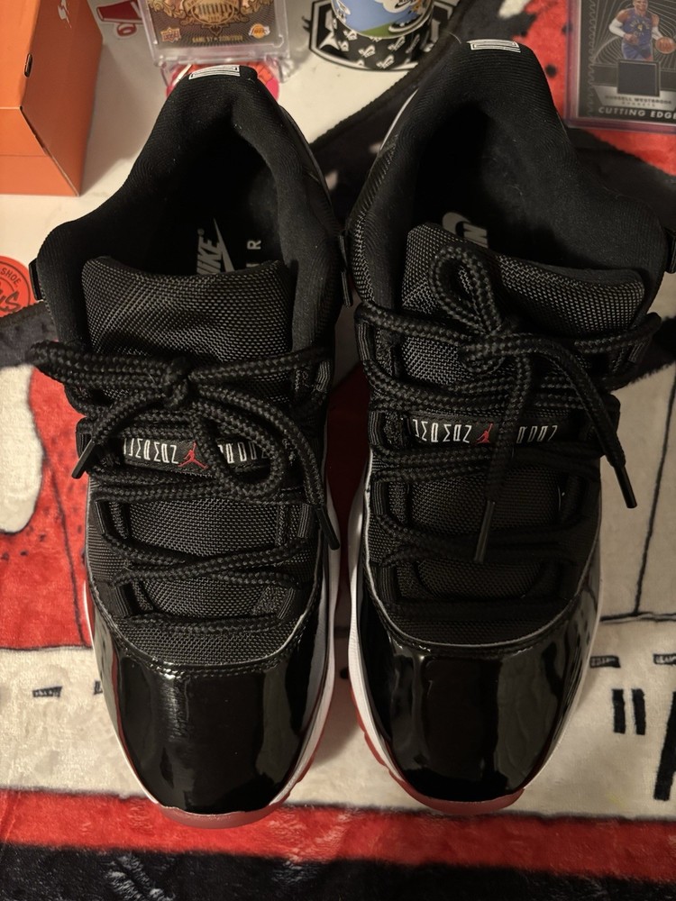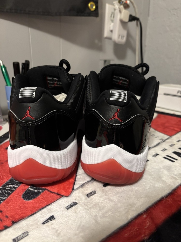 New in box men size 9 Jordan 11 retro low bred. Super clean. The paper inside the box is ripped a little is all