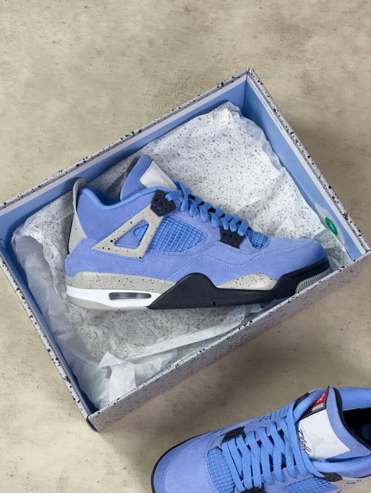 These Jordan 4s in University Blue are a must-have for sneaker lovers! The quality is top-notch, with great cushioning and a stylish retro look. The color pops, and they fit true to size. No box, but the shoes arrived in perfect condition. Super comfortable for all-day wear—definitely worth it!