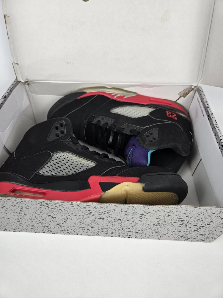 Jordan 5 Retro by Nike, pre-owned Men's 8. These are pre-owned so please see all pictures for imperfections and flaws. They do come with a box, but it is heavily damaged. Again in the pictures. If you should have any further questions, please do not hesitate to ask. Thanks 2B