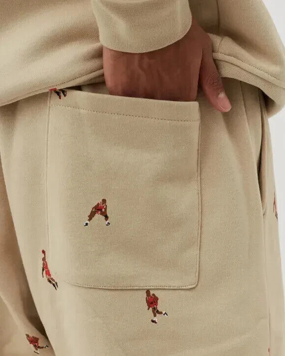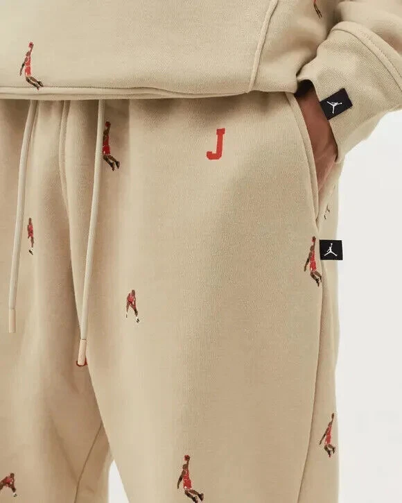 NWT Nike Jordan Essentials Men's All Over Print Fleece Pants MSRP: $75 SWEATS WITH SWAGGER. The gift that keeps giving: soft-as-a-sweet-dream French Terry joggers. Featuring an all-over print of mini MJs in action, you can wear these warm, relaxed trousers all season. Ribbed cuffs let you pair 'em with your favourite sneakers for added freshness. Benefits Lightweight French terry feels soft and smooth. Elastic waistband with an adjustable drawcord lets you personalise the fit. Ribbed cuffs lets you show off your sneakers. 28" Inseam Body: 80% cotton/20% polyester. Rib: 97% cotton/3% elastane. Pocket bags: 100% cotton Ribbed Cuffs Machine wash Color: Rattan Style: DV9390-206 New with Tag Thanks for looking! Check out my other items for more great deals!