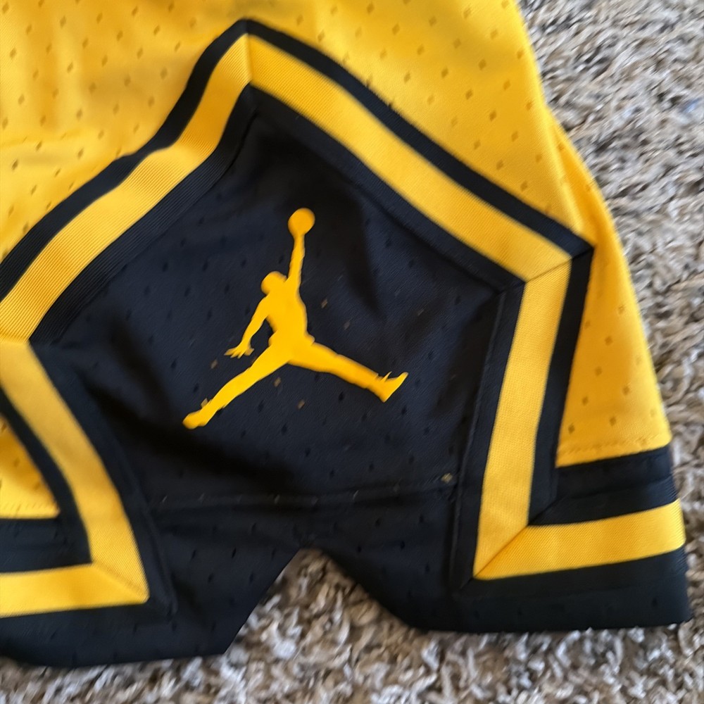 Handmade: No Theme: Sports Material: Polyester Garment Care: Machine Washable Compression Area: Waist Waist Size: 30 in Style: Athletic Color: Yellow Department: Men Occasion: Activewear Personalize: No Size: S Closure: Drawstring Brand: Jordan Vintage: No Season: Summer, Spring, Fall Size Type: Regular Fit: Regular Performance/Activity: Basketball