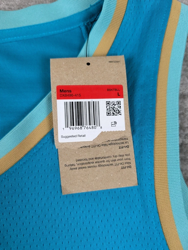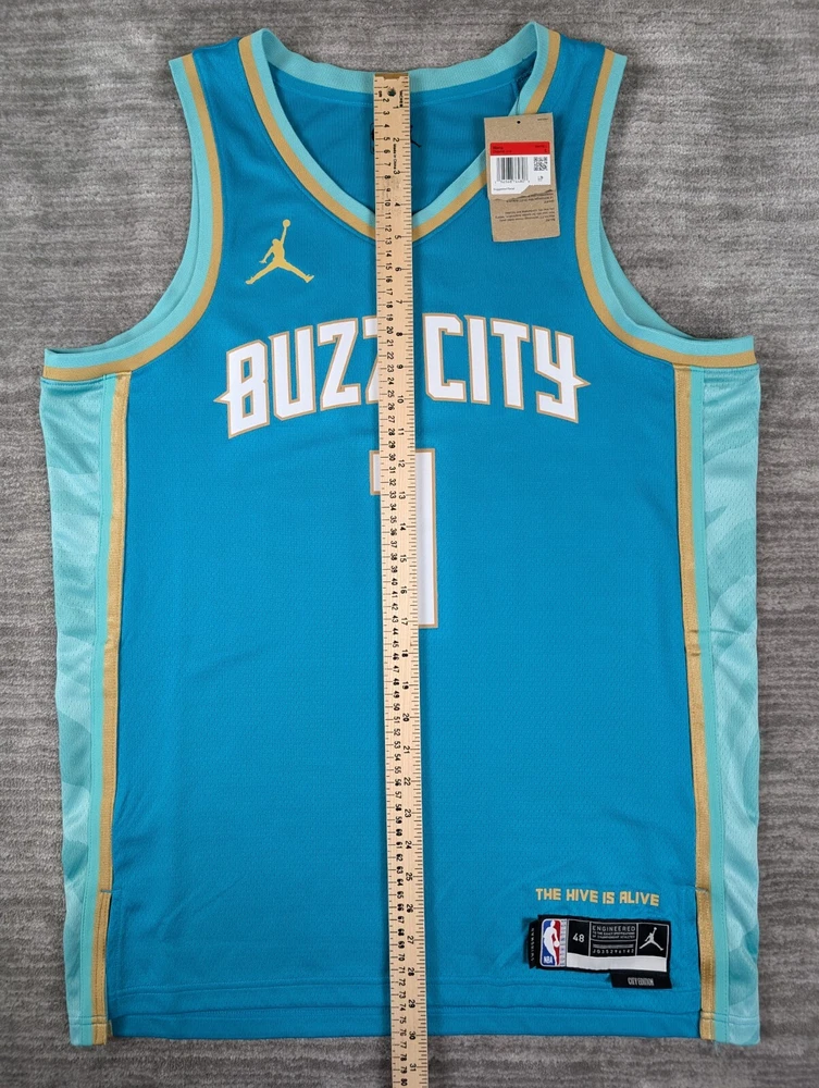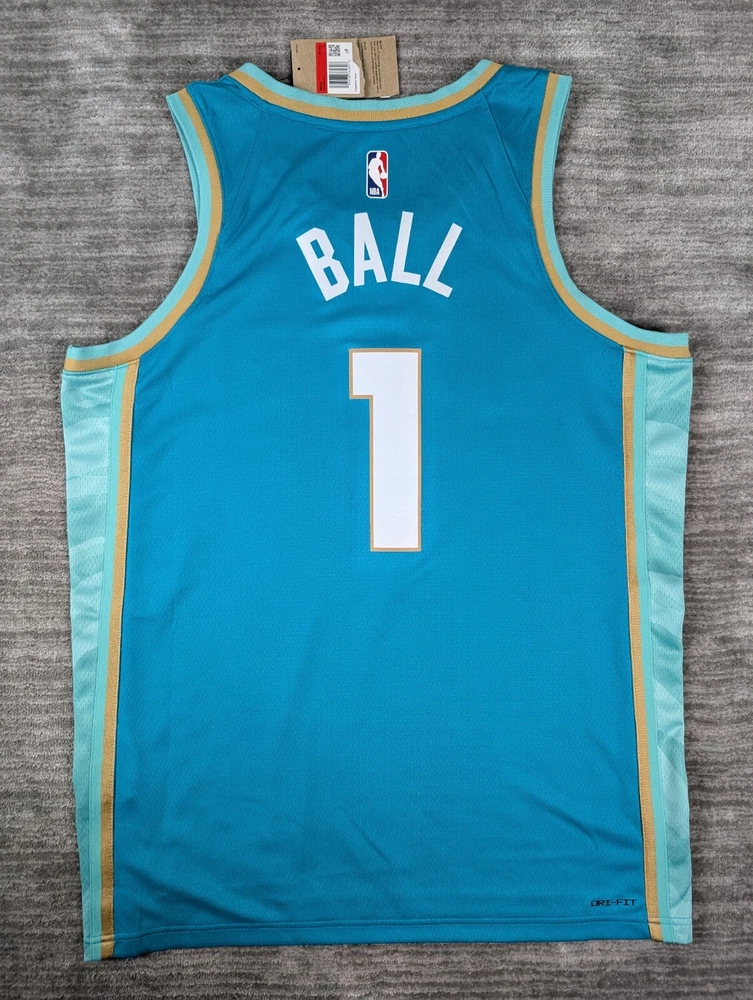 Sport:BasketballBrand:NikeTeam:Charlotte HornetsPlayer:LaMelo BallSize:LColor:TealLeague:National Basketball Association (NBA)Country/Region of Manufacture:JerseyOfficially Licensed:YesProduct:JerseyGender:Men