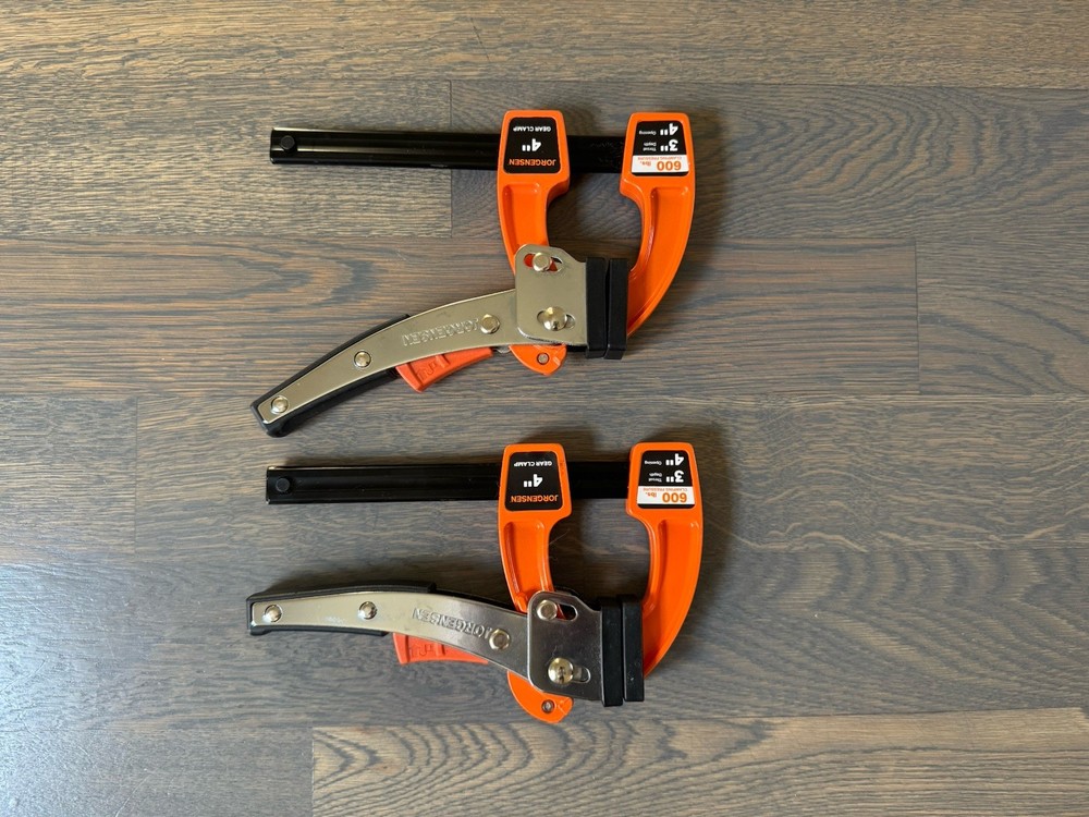 Jorgensen 4-Inch Bar Clamp Set – 2 Pack Used but in good working condition. These quick-release gear clamping force and are great for woodworking or general shop use. Shows normal signs of use. What’s shown in the photos is exactly what you will receive.
