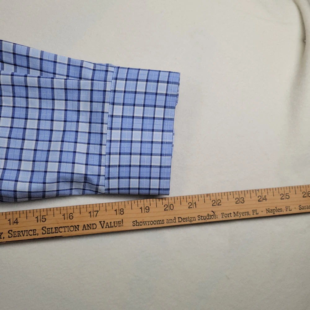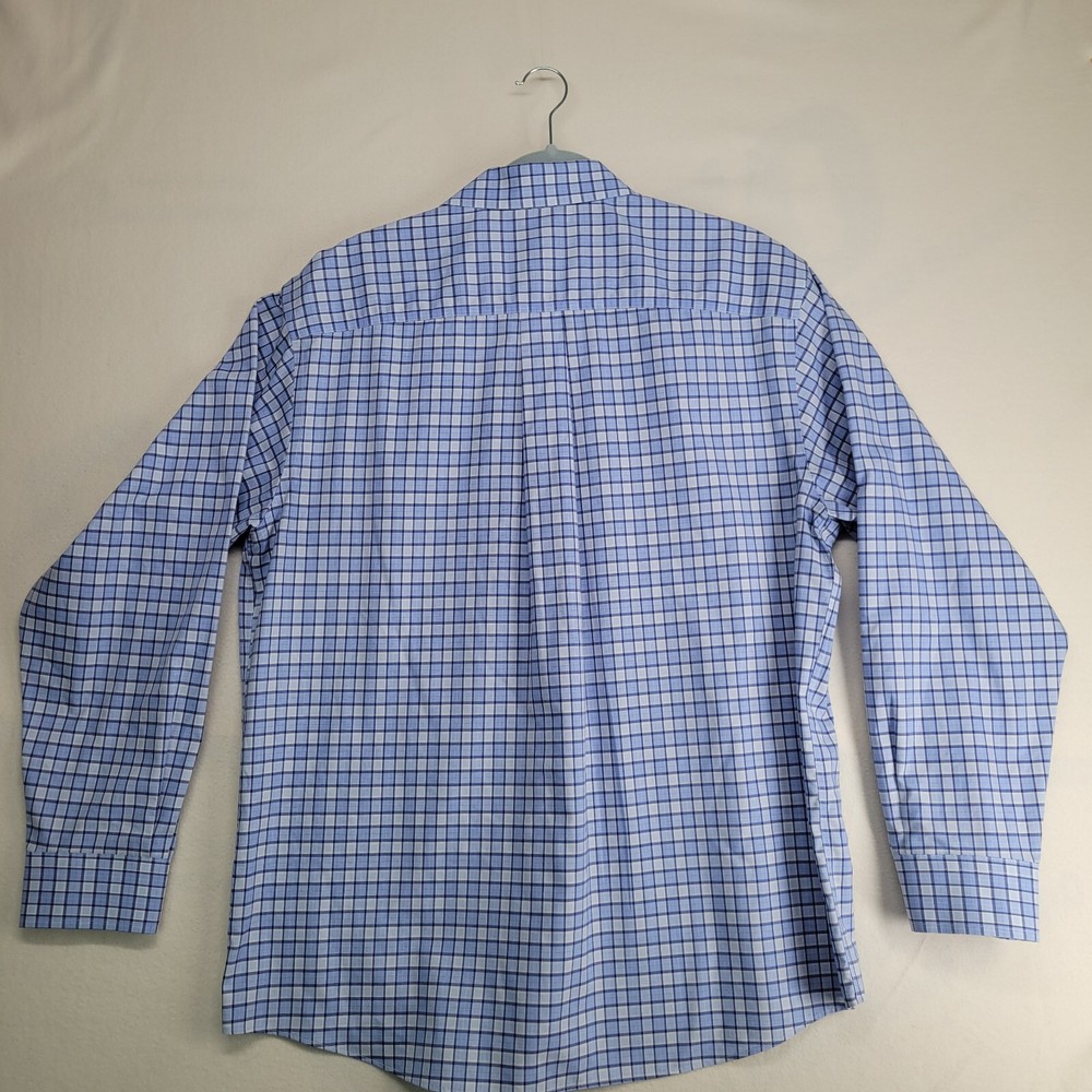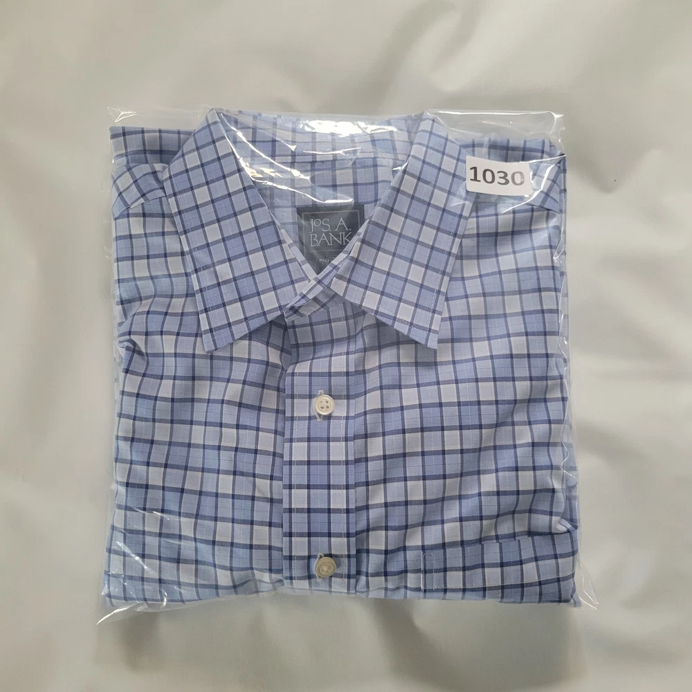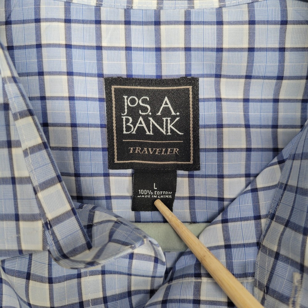 HomeJos A Bank Mens L Shirt Traveler Blue Check Plaid Button Up Dress Shirt