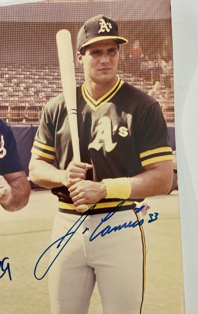 The product is an autographed 8x10 photo of Jose Canseco in his Oakland A’s uniform, and Pete Incaviglia in his Texas Rangers uniform, making it a rare find for baseball fans and collectors. This original photo captures a piece of MLB history with the signature of the legendary player, adding value and authenticity to any sports memorabilia collection. Rare. JP 004. JP 007